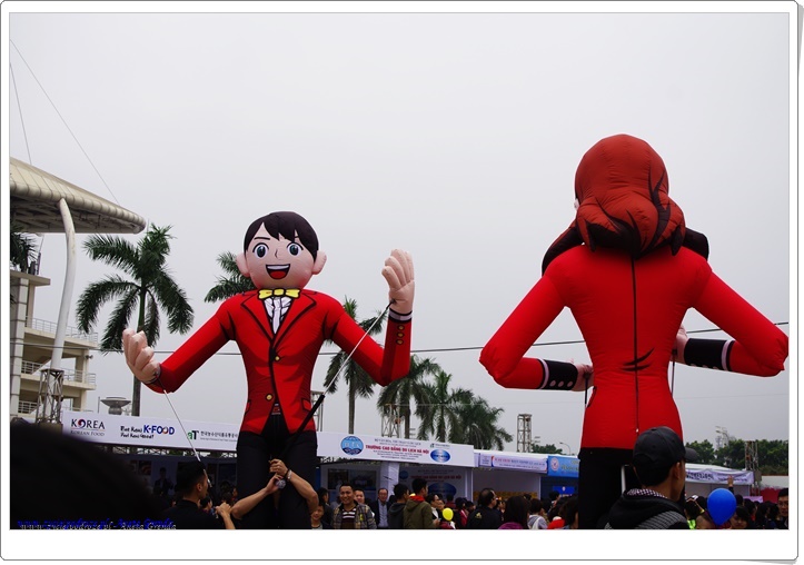 Festiwal odbywał się na Stadionie Narodowym Mỹ Định w Hanoi. Było mnóstwo osób odwiedzających, firm, hoteli, biur turystycznych i innych, którzy wystawiali swoje produkty lub proponowali konkretną ofertę. Interesujące było to, że wszyscy bawili się bardzo dobrze, o czym świadczyły uśmiechy i udział w wielu konkursach i pokazach. Można było skosztować unikalnych dań pochodzących z kuchni koreańskiej i wietnamskiej. Znalazła się wśród nich pho, czyli tutejsza zupa nieco przypominająca nasz rosół, a podawana z dodatkiem noodles, czyli makaronu a także wołowiny – phó bộ, kurczaka – phó gà, lub owoców morza – phó tóm, z samymi krewetkami phó hai sản. Bardzo ją lubimy, gdyż jest bardzo smaczna i rozgrzewająca. Ponadto można było spróbować Tteokbooki – klusek koreańskich przyrządzonych z delikatnego ciasta ryżowego z dodatkiem ryby, lub mięsa, warzyw sezonowych, podanych na ogół ze słodkim sosem z papryczek chili. Było również przepyszne kimchi, które bardzo lubimy, ale nie wiedzieliśmy, że występuję pod wieloma postaciami przyrządzane z różnorodnych warzyw.