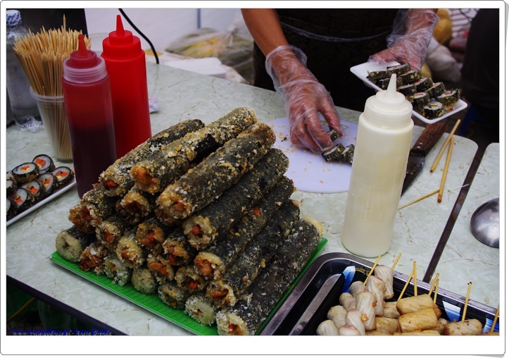 Oferowano również gimbap, czyli koreańską wersję sushi. Można było skosztować wietnamskiej bún cha, czyli dania składającego się z grillowanego mięsa wieprzowego, makaronu ryżowego, ziół, zieleniny i specjalnego sosu. Jest to danie bardzo popularne w Hanoi. Były też przepyszne wietnamskie Spring Rolls, zwłaszcza świeże, choć są też smażone, podawane z sosem do maczania. Dla smakoszy grillowanych dań oferowano ośmiorniczki lub inne bardziej codzienne szaszłyki z mięsem i warzywami.