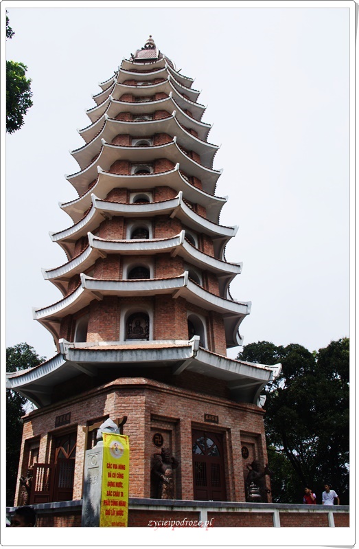 W Parku Ba Vi można podziwiać ogród orchidei i zakątek ptaków, a także świątynię wybudowaną w 1999 roku a zadedykowaną prezydentowi Ho Chi Minhowi, do której można dostać się po wspinaczce, gdyż położona jest na najwyższym szczycie gór. Prowadzą do niej ścieżka i schody, których jest 1229. Spacer jest cudowny pośród przepięknych drzew. Odnosi się wrażenie, że chcą one poprzez wydawane dźwięki coś powiedzieć, przekazać. Niedaleko świątyni poświęconej Ho Chi Minhowi znajduje się Bao Thien Tower. Wieża została wybudowana, a właściwie ukończona w 2010 roku na specjalną okazję, a mianowicie tysięczną rocznicę powstania, a właściwie przeniesienia stolicy do Thang Long, czyli Hanoi, o czym pisałam tutaj: https://zycietopodrozblog.wordpress.com/2016/01/21/wietnam-prowincja-ninh-binh-przepiekne-krajobrazy-i-magiczne-miejsca/. Wieża składa się z 13 pięter i ma wysokość 26,9 metra. Dookoła niej znajduje się 88 małych i dużych statuetek oraz 8 posągów buddyjskich Satury Diamentowej. Widoczna jest ona z daleka, gdyż góruje nad całą okolicą. Ponadto w Ba Vi National Park można odwiedzić świątynie: górną poświęconą dla Boga Tan Vien i środkową zwaną Tan Vien Pagoda.