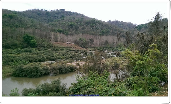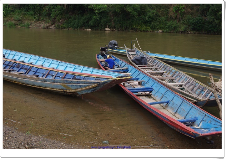 Poza podróżowaniem na motorku popłynęliśmy małą łódką rzeką Huay Thong. Zeszliśmy na ląd, aby zobaczyć słonie i wodospad, ale ten był wyschnięty niestety w tym czasie, choć kiedy my przebywaliśmy w Luang Prabang często padało. Zaopatrzyliśmy się w deszczówki i dzięki temu mogliśmy spacerować także w czasie opadów. Choć zdarzało się nam i zmoknąć do suchej nitki 🙂