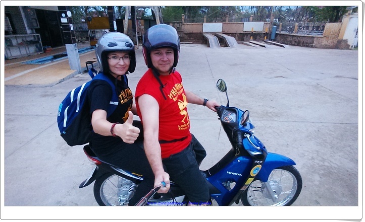 Z przystani do miasta, które od pierwszej chwili urzeka swą wyjątkowością, dojechaliśmy busikiem. Kolejnym krokiem było dotarcie do pensjonatu, który okazał się bardzo przytulny, a laotańscy gospodarze byli sympatyczni i przyjacielscy. Następnie udaliśmy się na główna ulicę miasta i wynajęliśmy motorek, którym postanowiliśmy się poruszać po Luang Prabang i okolicznych drogach, gdyż choć po mieście można było spacerować to już, aby zwiedzić okolice potrzebny był transport. A żeby być niezależnym motorek, czy też skuterek jest niezastąpiony, więc powróciliśmy do tego stylu podróżowania w czasie tej miesięcznej wyprawy zarówno w Laosie, jak i w następnych krajach, które mieliśmy wówczas odwiedzić, a więc w Wietnamie i niespodziewanie na Bali.