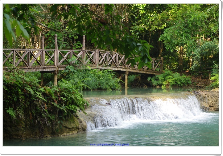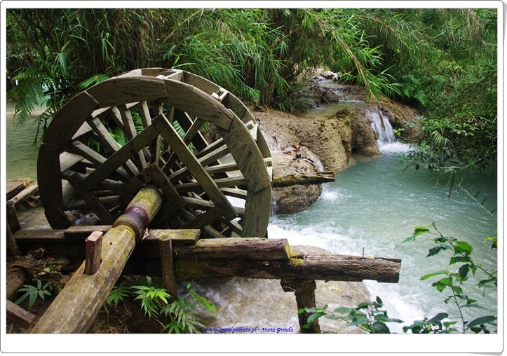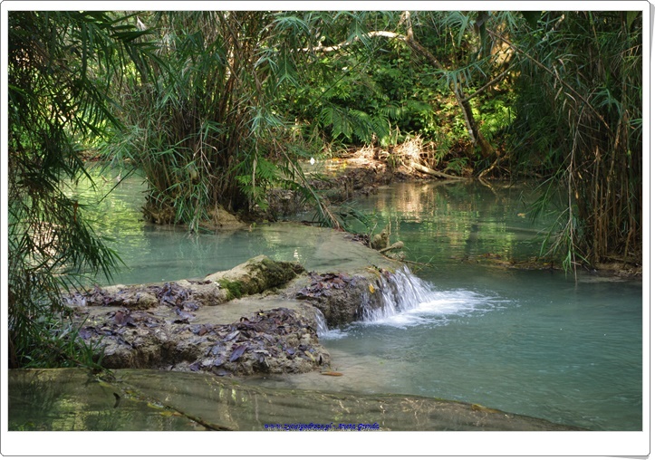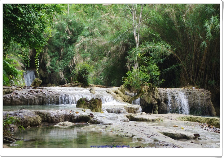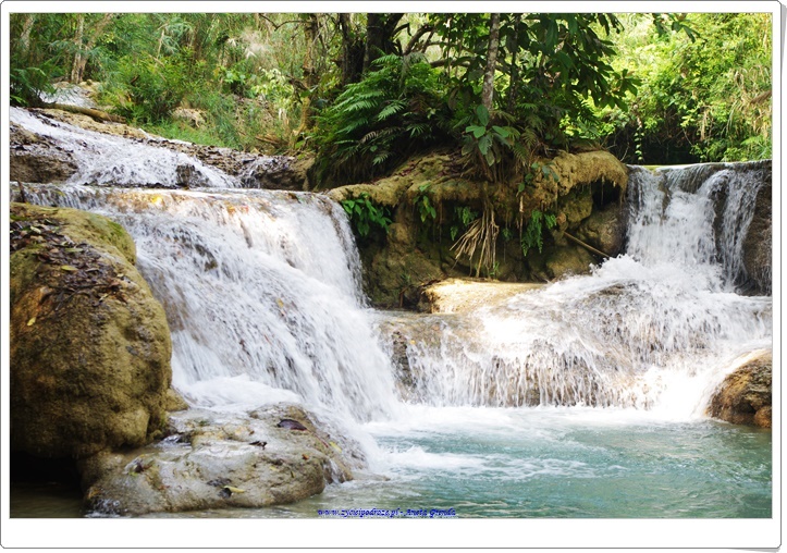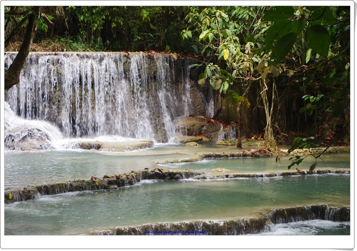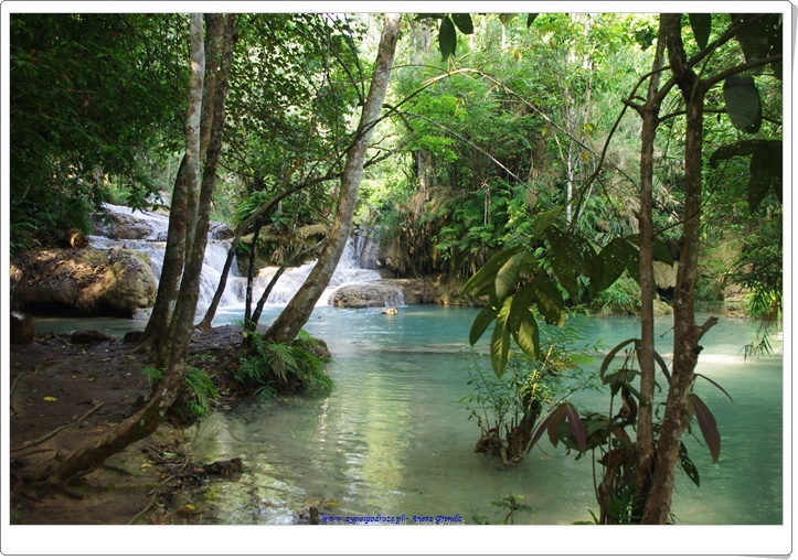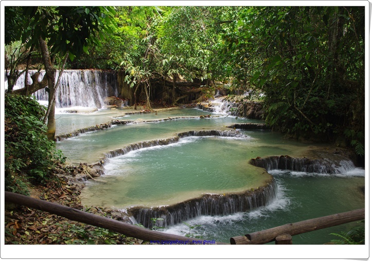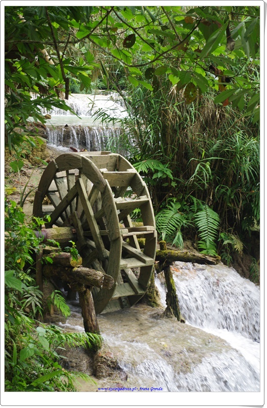 Odwiedziliśmy uroczą krainę pośród gór, w której znajdował się wodospad Kuang Si z mniejszymi jego odbiciami poniżej. Niezwykłe, zapierające dech w piersiach miejsce z wyjątkowymi, kaskadowymi wodospadami i cudowną miętowo-turkusową wodą. Coś niesamowitego. Byliśmy zachwyceni tym miejscem. A że dotarliśmy tam wcześnie rano mogliśmy się sami wykąpać w jednej z niecek. To było cudowne przeżycie. Spacer wśród szumiących wodospadów, wody o niezwykłym kolorze i otaczającej to wszystko zieleni był niezwykłym doświadczeniem ubarwionym kąpielą i zabawą w chłodnej wodzie. Schodząc drogą w dół podziwialiśmy dość groźnie wyglądającego misia 🙂 Był to Czarny Niedźwiedź Azjatycki, który żyje na tych terenach.