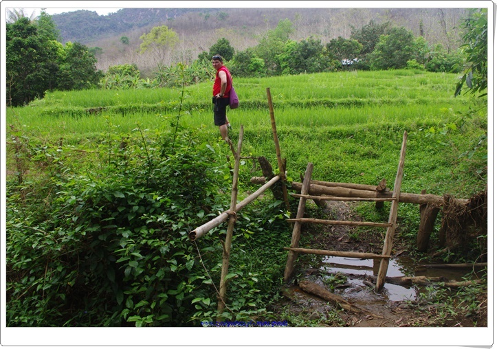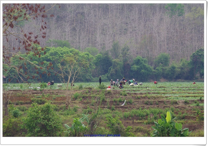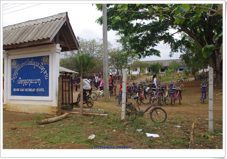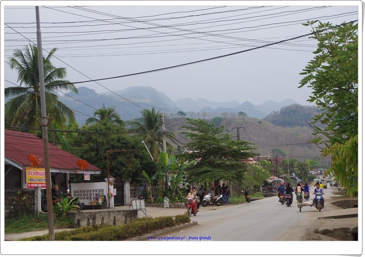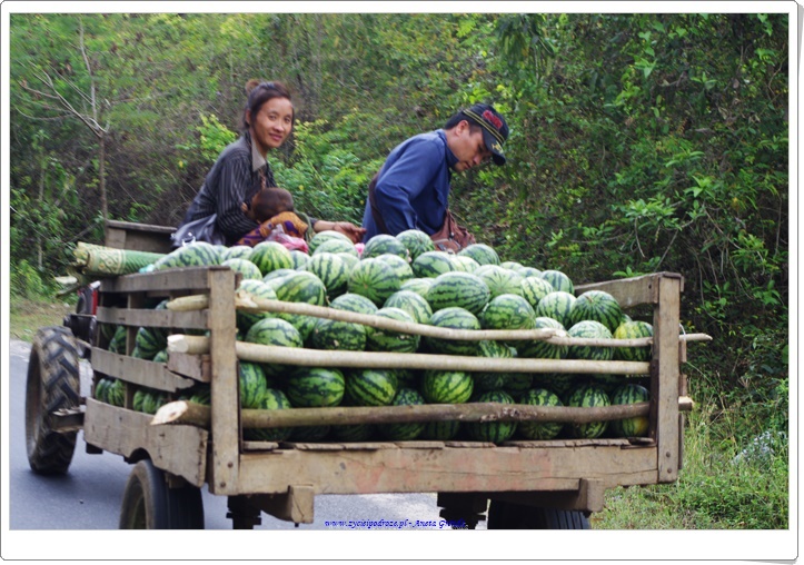 Wracając z wyprawy do Kuang Si mijaliśmy laotańskie wioski, szkoły i tubylców. Ludzie na wsiach poruszają się na własnych nogach lub rowerach, rzadziej wykorzystując skutery i motory lub pojazdy. Te wykorzystywane w większości służą do pracy w polu i przewozu wyhodowanych produktów, głównie ryżu, warzyw i owoców. Poza polami ryżowymi pięknie wyglądają te z ananasami. Położone są one na wzgórzach ze względu na specyfikę wzrostu tych owoców.