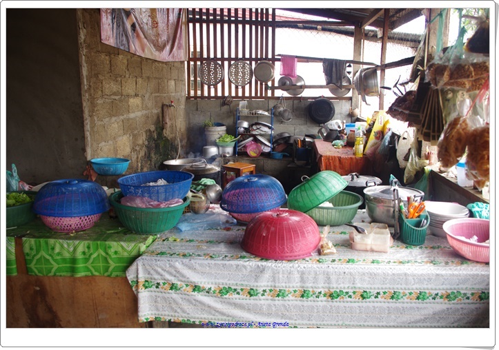Podróżując zatrzymaliśmy się na posiłek w tradycyjnej, otwartej, laotańskiej chacie. W tym domu u bardzo miłych ludzi skosztowaliśmy pysznego domowego jedzenia. Sporo mieszkańców wsi też przychodziło tutaj, aby zjeść, bądź zabrać pożywną i smaczną zupkę na wynos. A pakowano ją w takie to oto woreczki. W czasie kilku dni spędzonych w tych okolicach skosztowaliśmy kilka razy jedzenia przy ulicach. Można było poza zupą zjeść świetnie doprawione i mięciutkie szaszłyki, przygotowane przez miejscowe kobiety, a grillowane przez panów, choć to nie było regułą, lub świeże grillowane ryby i wiele innych pyszności. A wszystko to w towarzystwie życzliwych, przyjaznych, otwartych osób. Laotańczycy to przemili ludzie, o czym zwłaszcza w czasie podróży po wioskach można się przekonać.