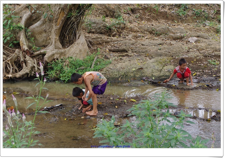 Poza świątyniami i uroczymi budynkami Luang Prabang jest ozdobione dużą ilością pięknej, zielonej roślinności. Na jej tle budynki i obiekty religijne wyróżniają się bardzo ze swoimi złotymi, białymi i różnokolorowymi barwami. Spacer pośród nich jest ogromną przyjemnością. My po zwiedzeniu Luang Prabang, spacerze po mieście, odwiedzeniu kilku świątyń i odpoczynku nad rzeką Nam Khan wybraliśmy się już drugiego dnia motorkiem na przejażdżkę, aby zwiedzić okoliczne wioski i ujrzeć cudowną, niezwykłą naturę i przepiękną krainę, która rozciągała się dookoła. Mijaliśmy wspaniałe góry, piękne pola ryżowe, które wyglądały ślicznie mieniąc się soczystą zielenią wśród promieni słońca. Mieszkańcy pracowali na polach lub w swoich gospodarstwach. Przy drogach rosło bardzo dużo drzew tekowych, a radosne dzieci bawiły się tak, jak w Polsce kilkadziesiąt lat wstecz, gdy byłam bardzo mała, kiedy to nie spędzało się czasu przed telewizorem tylko na powietrzu wymyślając różne zabawy.