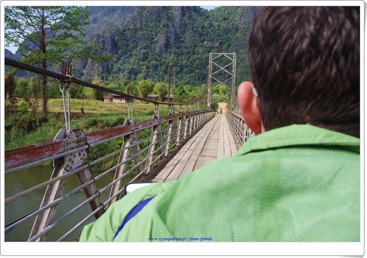 My będąc niezależnymi mając wypożyczony motor sami organizowaliśmy sobie wyprawy z mapą w ręku. Okolica zachęcała do tego bardzo. Vang Vieng położone jest wśród nienaruszonej obecnością człowieka przyrody, gór wapiennych, dżungli, pól i łąk. W tej oszałamiającej krainie, pełnej polnych dróg, drewnianych mostów czas się zatrzymał.