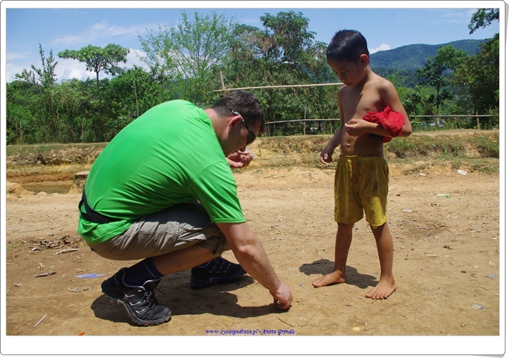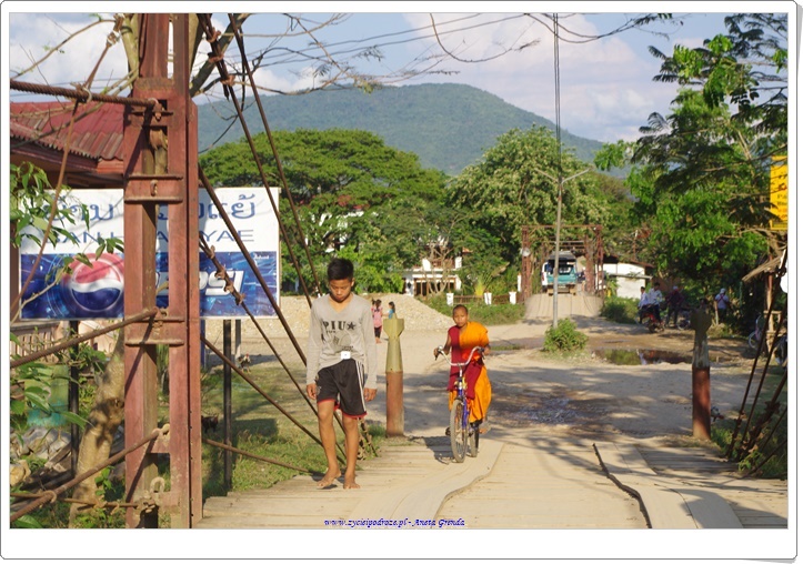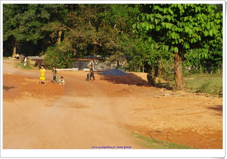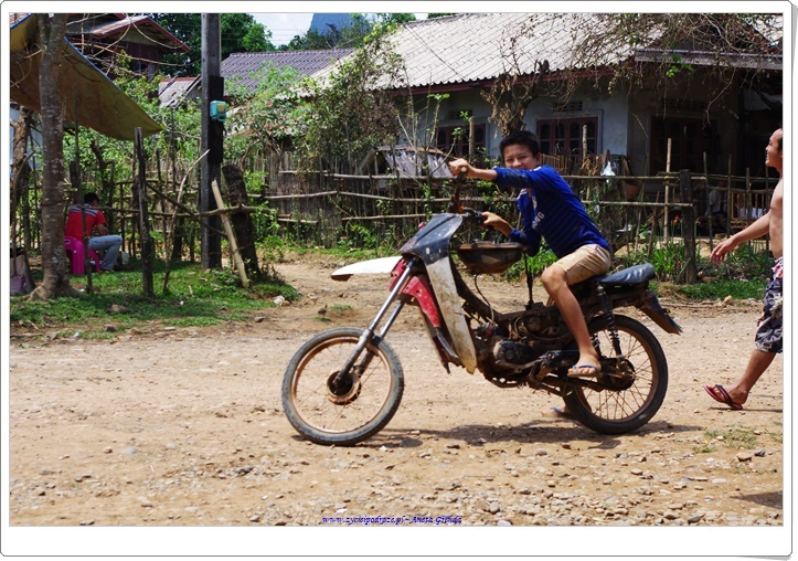 Jeżdżąc na motorku odwiedzaliśmy wioski, które były urocze, naturalne, takie jakby sprzed 100 lat. Tak, w laotańskich wsiach czas się zatrzymał. Uwielbiam takie klimaty i aurę w takich miejscach panującą. A to wszystko w towarzystwie wspaniałych, uczynnych i przyjacielskich ludzi. Byłam nimi zachwycona. Cieszyli się, że zatrzymaliśmy się u nich na wsi na przykład przy sklepiku i spędziliśmy tam kilka chwil. Dzielili się z nami nawet posiłkami. Urzekające jest to, że ludzie, którzy sami niewiele mają dzielą się tym z innymi. My grzecznie podziękowaliśmy, ale w sklepikach prowadzonym przez nich kupowaliśmy napoje i przekąski. Siedzieliśmy z nimi trochę obserwując mieszkańców. Młodzi chłopcy na ogół trochę się popisywali, dzieci się bawiły, a dorośli pracowali, zrywali owoce z palm lub opiekowali się małymi dziećmi. Takie chwile są bezcenne. Nie można ich do niczego porównać.