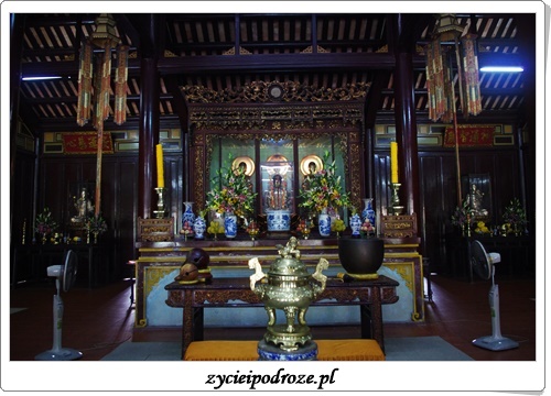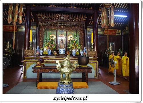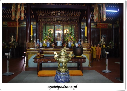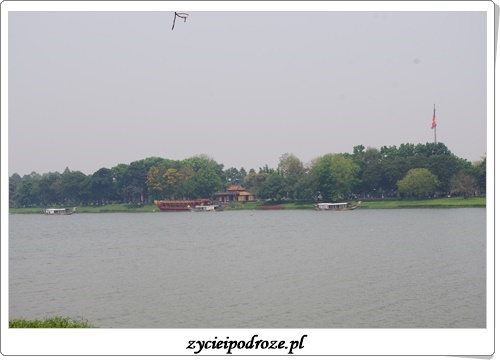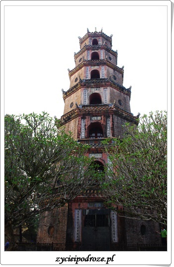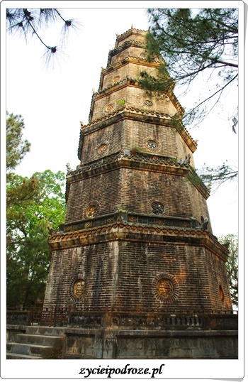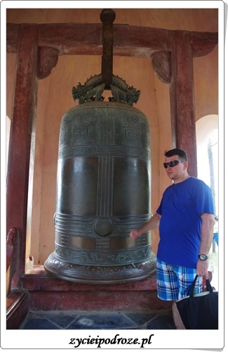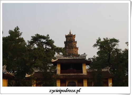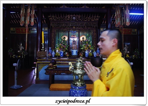 Następnie udaliśmy się motorkiem kawałek dalej, aby podziwiać Pagodę Thien Mu, czyli Świątynię Niebiańskiej Damy. Usytuowana ona jest na wzgórzu Ha Khe. Rozpościera się stąd widok na Rzekę Perfumową. Miejsce jest wyjątkowe, a mnisi odprawiają tutaj swoje rytuały modlitewne, przy dźwiękach muzyki i śpiewu.