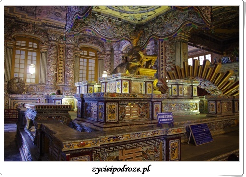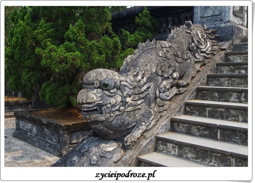 Ponieważ w okolicach miasta znajduje się wiele grobowców i mauzoleów postanowiliśmy odwiedzić też kilka z nich. Zapewne wartym miejscem, aby je zarekomendować jest Khai Dinh Tomb czyli Mauzoleum Khai Dinha.