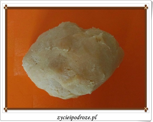 Do mąki dodajemy stopniowo wszystkie składniki i wyrabiamy ciasto rękoma. Tak przygotowane odstawiamy do lodówki, aby stwardniało na minimum 30 minut.