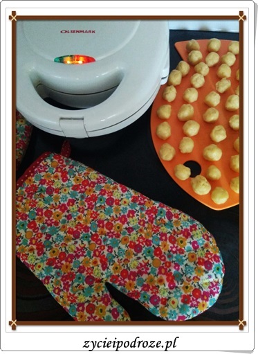 Wyciągamy z lodówki nasze ciasto i przystępujemy do formowania niewielkich kuleczek. Umieszczamy je w nagrzanym urządzeniu wielofunkcyjnym i po około 10 minutach zarumienione wyciągamy. Powtarzamy tę czynność do czasu, gdy wykorzystamy całe ciasto.