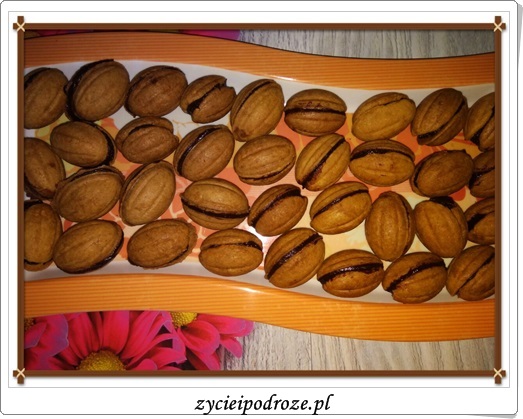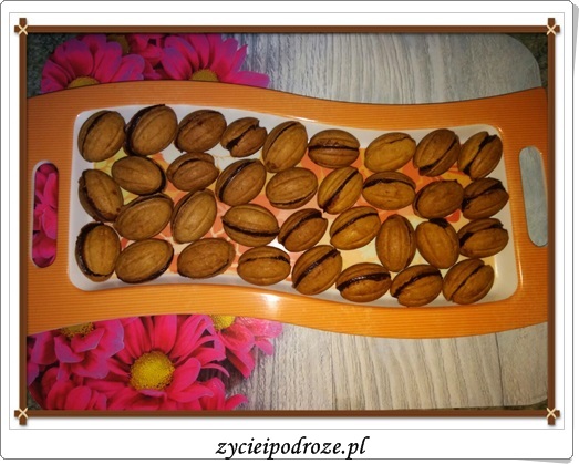 Nasze orzeszki nadziewamy masą czekoladowo-orzechową i możemy delektować się ich smakiem, bądź postawić na stole w oczekiwaniu na gości.