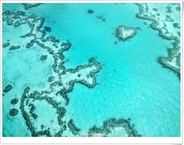 Australia, choć jest jednym z najbardziej płaskich kontynentów, posiada wiele gór, wzgórz i interesujących skał, co czyni ją jeszcze bardziej różnorodną. Z kolei wybierając się na przejażdżkę hydroplanem, samolotem, czy helikopterem można podziwiać ogromną, magiczną Wielką Rafę Koralową – The Great Barrier Reef i okalające ją wysepki. Jest ona największą tego typu formą na świecie. Rozciąga się wzdłuż wschodniego i północno-wschodniego wybrzeża Australii łącząc, a może dzieląc 🙂 Morze Koralowe z Oceanem Spokojnym. Rafa koralowa jest niezwykłym miejscem powstałym przede wszystkim z koralowców i innych szkieletów organizmów wchodzących w jej skład. Bajeczna i przeurocza zachwyca oraz fascynuje. Ku mojej radości rafa w kształcie serca – Heart Reef istnieje naprawdę i mogłam ją zobaczyć na własne oczy, a było to jedno z moich australijskich marzeń. Jest przepiękna i naprawdę serduszkowa 🙂 Nie mam żadnych wątpliwości, że trzeba ją zobaczyć będąc w Australii. Warto także pobyć choć kilka chwil na jednej z wysp położonych tuż przy rafie racząc się ciepłą tonią wód Morza Koralowego, jak i stąpając po bielusieńkim, drobnym piaseczku. Stworzona do tego jest plaża Whitehaven Beach położona na wyspie Whitsunday. Rozciąga się ona na długości 7 kilometrów i jest niezwykła.