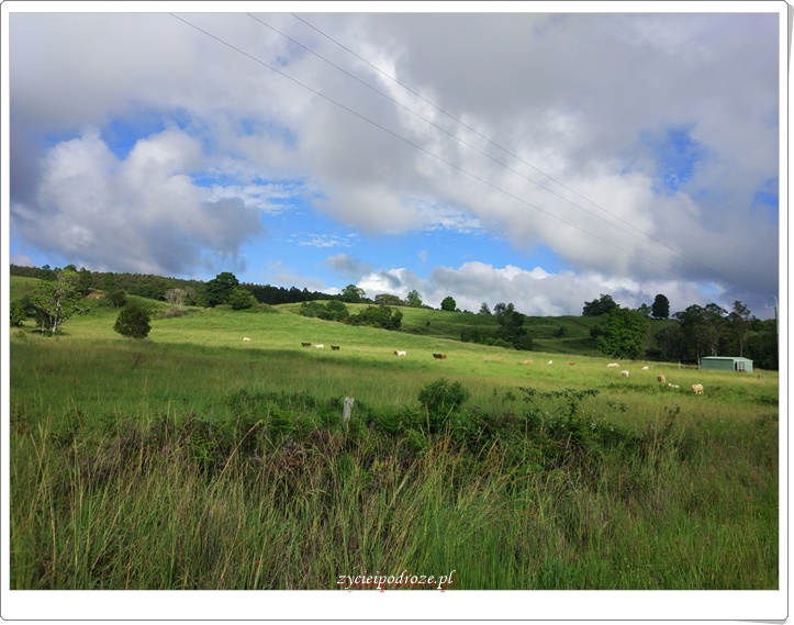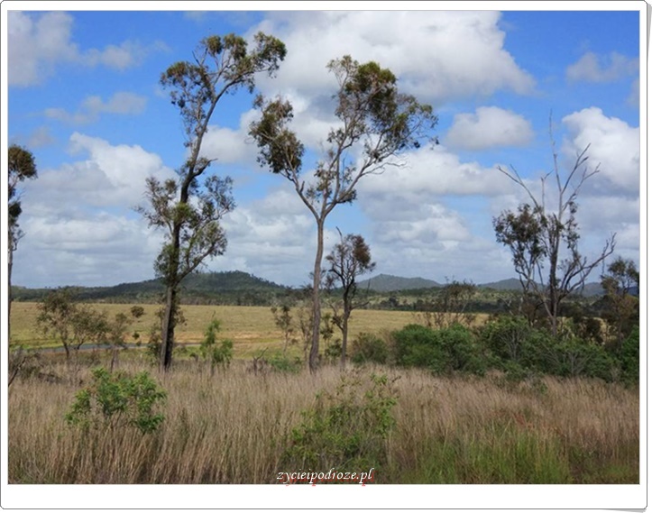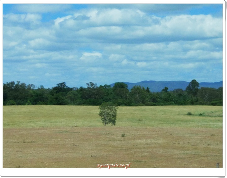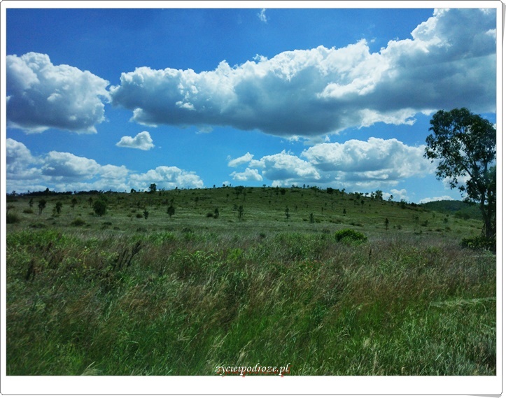 W Australii nie można się nie zakochać. Zwłaszcza w zielonych połaciach pastwisk, łąk, gęstych od drzew i krzewów parkach narodowych, niezwykłym, różnorodnym wybrzeżu, zielonej tropikalnej dżungli wydającej wyjątkowe odgłosy typowe dla niej lub odmiennie w odgłosach buszu i jego wyglądzie. Charakteryzuje się on znacznie rzadszą roślinnością pośród której można spacerować, w przeciwieństwie do dżungli, gdzie często jest to wręcz niemożliwe, chyba, że będzie się ją karczowało maczetą 🙂 Busz występuje na terenach suchszych stąd jest mniej zielony niż soczyście zielone lasy deszczowe, czy roślinność tropikalna typowa dla wilgotniejszych rejonów. Trawy wokół niego są wysuszone. Jednakże busz ma swój urok, który mi przypomina niemalże prerie. Odgłosy wydobywające się z niego są spokojniejsze, choć wcale nie mniej interesujące. Zadziwiające jest to, że zarówno odgłosy dżungli, jak i buszu, nie przeszkadzają, a może wręcz sprawiają, że śpi się doskonale w ich towarzystwie.