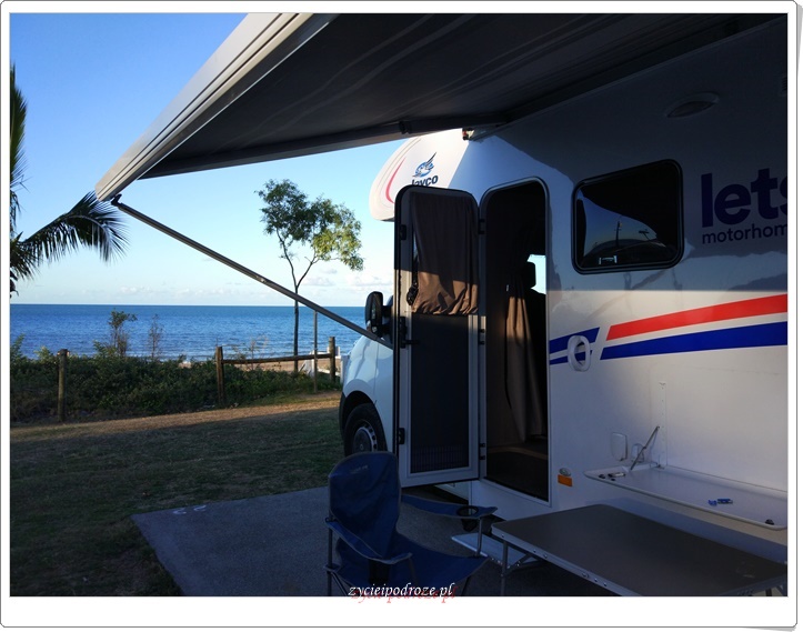 Świadomie nie zdecydowaliśmy się na odwiedzenie Fraser Island, gdyż zamierzaliśmy odwiedzić inną z wysp. W Harvey Bay zatrzymaliśmy się na postój tuż przy morzu. Kolacyjka w takim otoczeniu smakowała wybornie, a spacer brzegiem morza był znakomitym uwieńczeniem całego, długiego dnia.