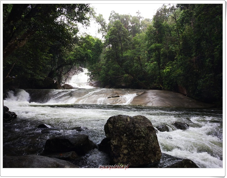 Ponieważ nie wypłynęliśmy i z Mission Beach na wędkowanie udaliśmy się w drogę do Cairns. Zatrzymaliśmy się w Wooroonooran National Park, gdzie podziwialiśmy magiczne góry z największym szczytem Mount Bartle Frere mierzącym 1622 metry n.p.m. oraz spędziliśmy czas przy pięknym wodospadzie Josephine Falls, który urzeka i zadziwia, a woda w nim płynie niezwykle wartkim, żywym strumieniem. Pewnie wyglądał tak niezwykle dlatego, że ostatnio padały deszcze.