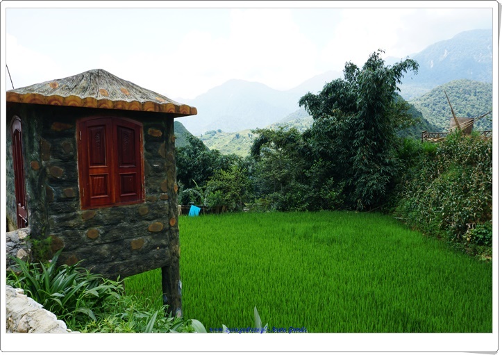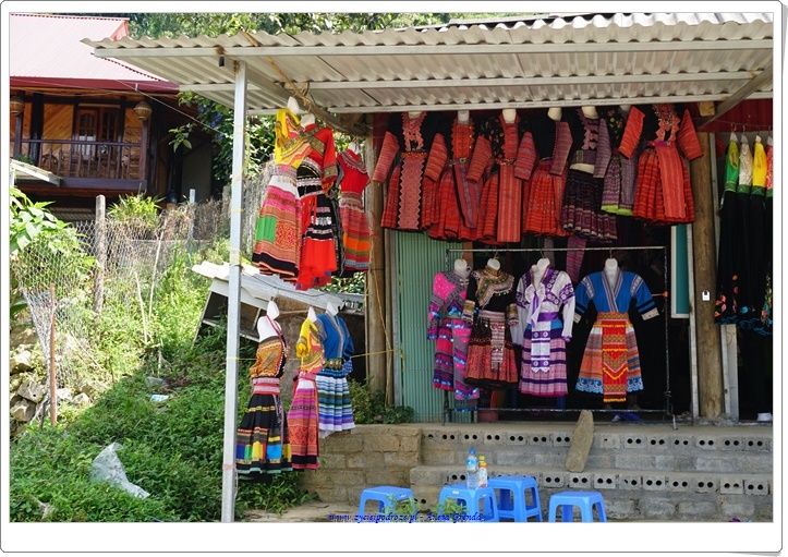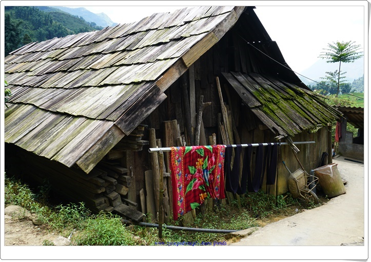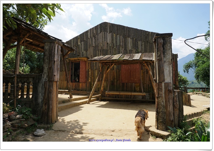 Domy H’mongów mają prostą i charakterystyczną konstrukcję. Składają się z trzech izb zamykanych na drzwi. W każdym domu znajduje się ołtarz, kuchnia, miejsce do przechowywania żywności oraz pokój do spania i oddzielny do przyjmowania gości. We wnętrzu widoczne są trzy kolumny, na których jest on wsparty. Ściany wykonane są z tartaku, a dach jest przeważnie drewniany, choć widziałam również blaszane. Drzwi główne domu są na ogół zamknięte. Otwierane są zazwyczaj wówczas, gdy odbywają się ważne uroczystości, czy też mają miejsce ważne wydarzenia. Wokół domów rozciągają się piękne, zielone pola ryżowe lub znacznie wyższe i o innym odcieniu zieleni pola kukurydziane. Cała wioska wygląda niezwykle i zachęca do odwiedzin.