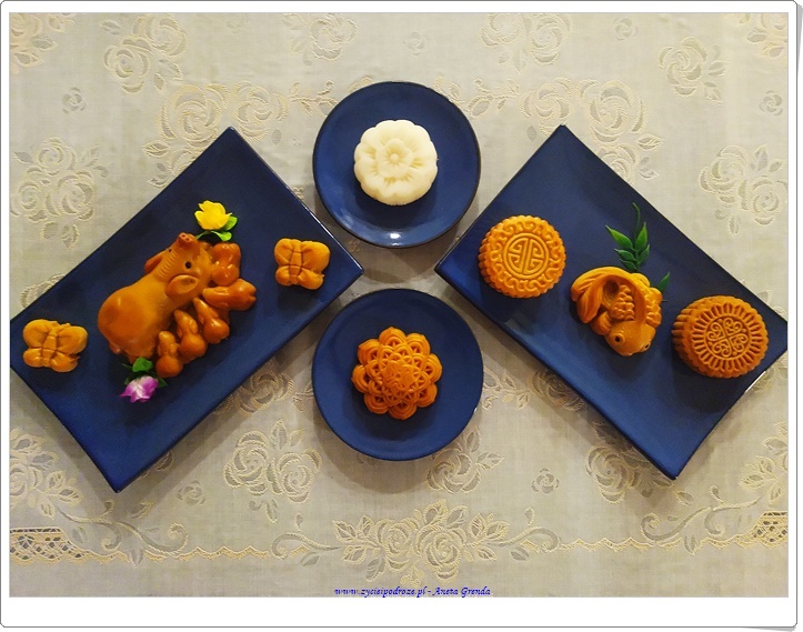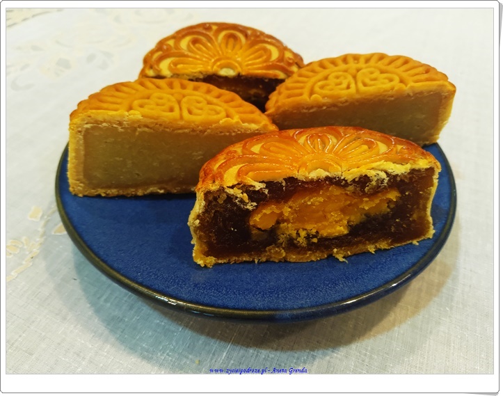 Osobiście popróbowałam różne rodzaje Moon Cake i trudno mi zdecydować, czy któreś z nich są moimi ulubionymi. Na pewno zaskoczyło mnie, gdy po raz pierwszy w środku ciastka zobaczyłam słone żółtko jajka, które ze słodkim otoczeniem smakowało dziwnie. Najbardziej przypadły mi do gustu te z nadzieniem nasion lotosu. Lubię też te z dodatkiem sezamu, czy orzeszków. Może dlatego, że lubię go jako składnik deserów. Jedno jest pewne, że ciastka księżycowe wyglądają niezwykle, ale do moich ulubionych przysmaków nie należą. Każdego zachęcam jednak do spróbowania i wyrażenia własnej opinii 🙂