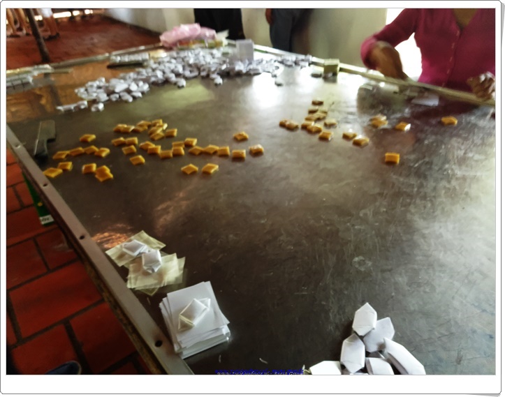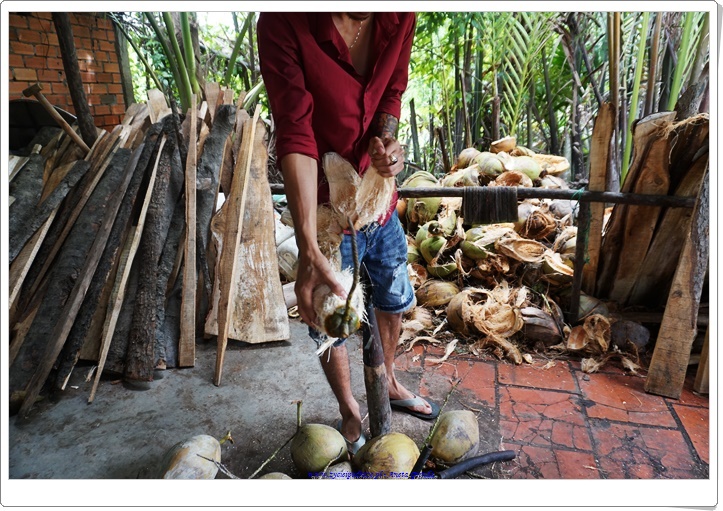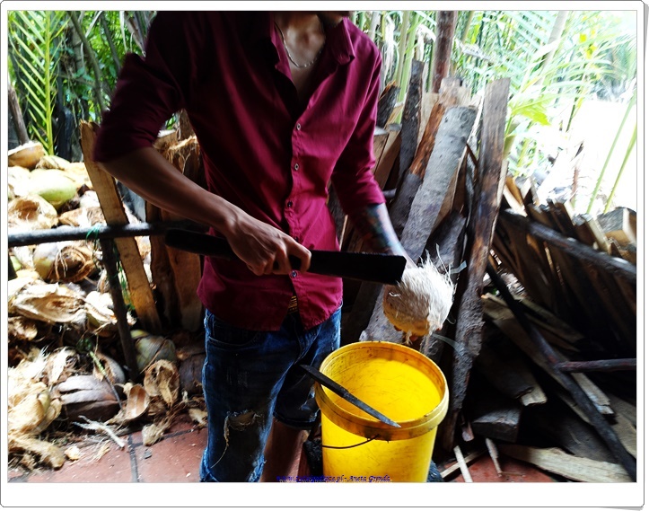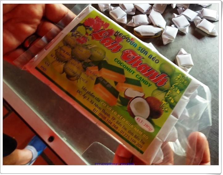 Kolejnym interesującym miejsce, które mogliśmy zobaczyć była manufaktura cukierków, a także rękodzieła wytwarzanych z kokosa. Oprócz wody kokosowej, świeżego kokosa, cukierków, których skosztowaliśmy mogliśmy podziwiać naczynia, ozdoby, przyrządy służące do połowu ryb, a także maty wykonane zarówno z kokosa, jak i trawy ryżowej stanowiące wyposażenie niemalże każdego domu w Delcie Mekongu. Tradycja rękodzielnicza, tak jak i inne w tych regionach, przekazywane jest z ojca na syna, z matki na córkę.