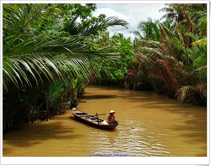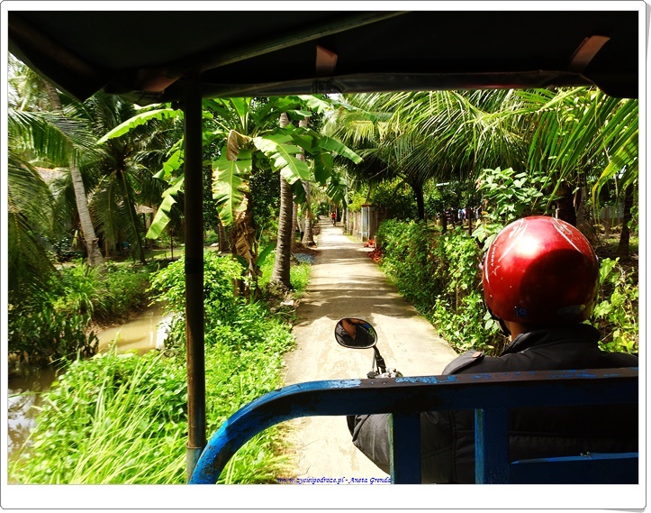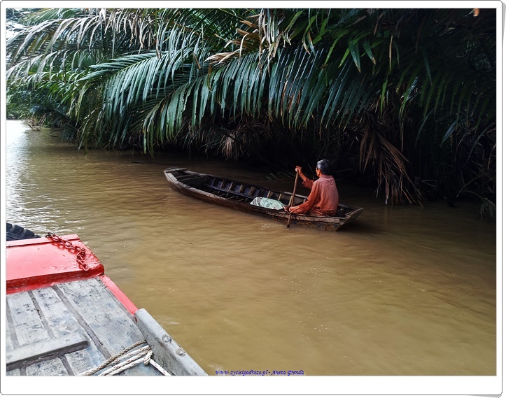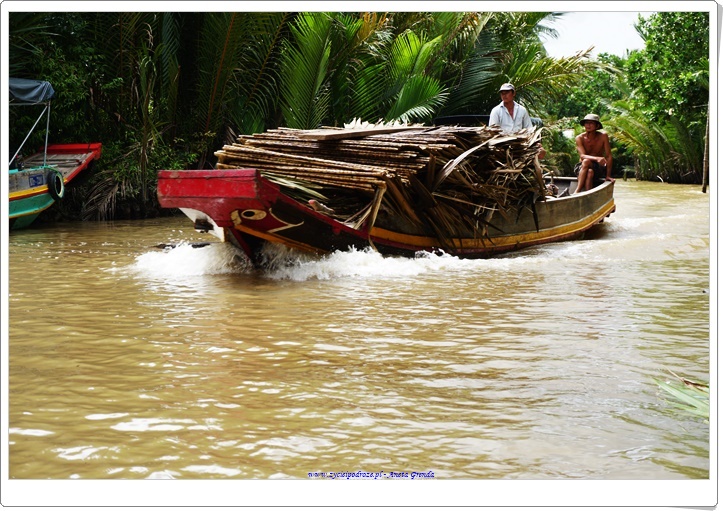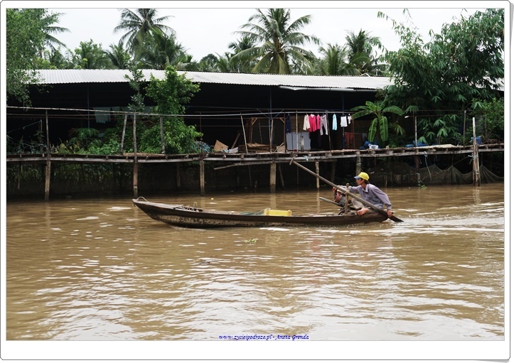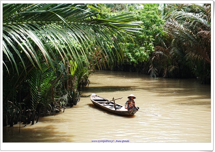Rejs po kanałach, kanalikach jest bardzo interesujący, a Delta Mekongu zachwyca, choć woda jak to w krajach Azji bywa ma specyficzny zielony kolor, zresztą w dużej mierze zależny od podłoża i gleb występujących na tym terenie. To fantastyczne płynąć tak tylko ze sternikiem i przewodnikiem pośród toni wód i w otoczeniu palm, różnego rodzaju kokosów, od tradycyjnych, po wodne i innej egzotycznej roślinności. Niesamowite, że prąd wodny w niektórych miejscach jest bardzo silny, a przecież ludzie przemieszczają się tam niemalże każdego dnia. Ma się wrażenie, że wyssali tę sztukę z mlekiem matki.