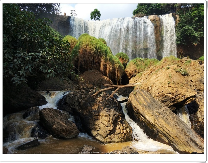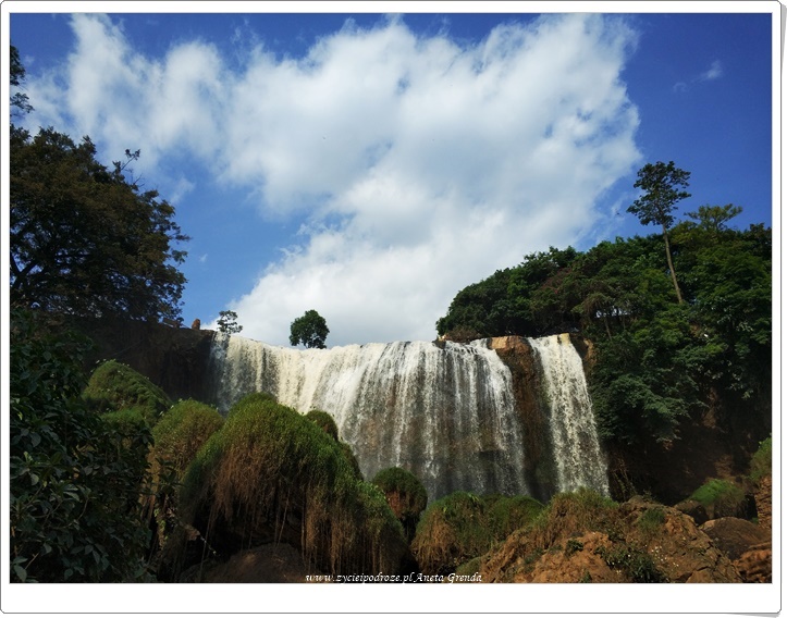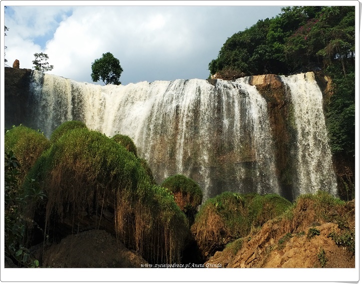 Widok jest niezwykły, a dźwięk niczym grzmoty uderzającej z ogromną siłą wody rozbijającej się o skały i kamienie sprawia, że wodospad jest niezwykle fascynujący. Obraz tego niezwykłego pomnika przyrody, jakim jest Elephant Waterfall, na długo pozostanie zapewne w pamięci. Bo choć nie jest on wcale największy, to przez perspektywę z jakiej go widzimy, wydaje się ogromny. Widok z dołu eskaluje bowiem jego potęgę. Siedząc na kamieniach i przyglądając mu się z dołu miałam wrażenie, że znajduję się przed czymś ogromnym i fantastycznie wyjątkowym. Bo choć, jak dla mnie Elephant Waterfall, nie jest najpiękniejszym wodospadem położonym w okolicach Da Lat i Buon Ma Thuot, to zachwyca zarówno wyglądem, jak i przede wszystkim siłą uderzenia wody spadającej z progu skalnego. Wokół wodospadu możemy podziwiać lasy z interesującymi jaskiniami i pradawnymi drzewami, co niewątpliwie dodaje całej okolicy uroku. Odwiedzając tę część Wietnamu warto zatrzymać się tutaj na chwilę.