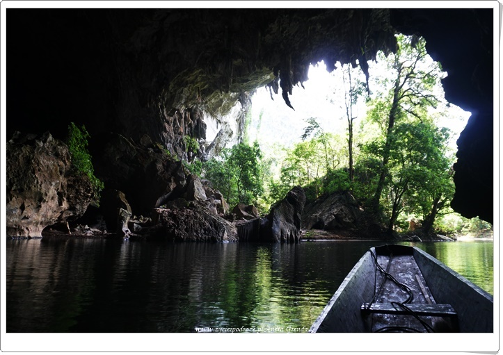 Kong Lor jest jaskinią, którą uważa się za jeden z geologicznych cudów Azji Południowo-Wschodniej. Ma łączną długość 12,4 kilometra. My płynęliśmy 7,5 kilometra w jedną stronę i tą samą drogą wracaliśmy, gdyż podróż podzielona jest na etapy. Jaskinia jest bardzo szeroka i wysoka, a tutejszy system rzeczny jest jednym z najdłuższych na świecie. Spektakularna Kong Lor ma ponad 100 metrów wysokości i jest pełna starożytnych stalaktytów i stalagmitów. Niektóre przypominają wyglądem żabę, sowę, czy też przedstawiają wizerunek Buddhy. Legenda głosi, że podziemna rzeka została odkryta w XVI wieku po tym, jak mieszkańcy wioski zauważyli dziwacznie wyglądającą kaczkę, która nie pochodziła z tego obszaru. Pływała ona w szmaragdowym basenie. Do dziś mieszkańcy uważają, że woda w nim świeci jasnym szmaragdowym kolorem, który oni uważają za święty. Wierzą, że odbija ona skórę hinduskiego boga Indry. Poza kaczką mieszkańców zainteresował zakwitający ryż i drewniane jarzmo bawołów. Zaczęli oni podejrzewać, że rzeka Nam Hinboun może przedostawać się przez górę. Ponoć po trzech dniach eksploracji przy świetle pochodni płynąc łódką dotarli na drugą stronę, gdzie założyli wioski Ban Sianglae i Ban Kkunkeo. Przez długi czas jaskinia pozostawała w cieniu gór. Odkryto ją ponownie w 1995 roku, a w 2002 została udostepniona odwiedzającym. Mieszkańcy wsi Natan, znajdującej się po drugiej stronie rzeki, nadal korzystają z jaskini jako głównej metody transportu, ze względu na okropne drogi w okolicy. Kiedy muszą wysyłać zbiory tytoniu na rynek w Thakhek, stolicy prowincji, po prostu ładują go na łódki i przemierzając rzeką przez ciemną jaskinię transportują go.