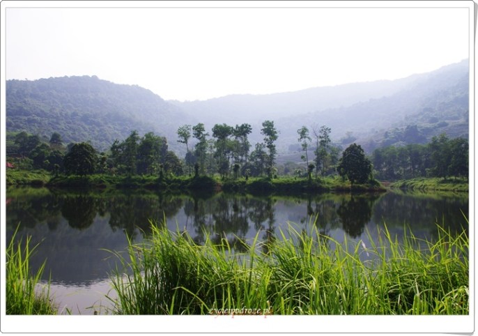 Kolejnym naszym wyborem było jezioro Hồ Cua. Położone tuż w pobliżu Parku Ba Vi i wejścia do niego. Otaczają go zewsząd góry, pola herbaciane i niezwykła roślinność. Choć miejsce jest piękne, co zwłaszcza widać z góry jadąc trasą przez park to niekoniecznie jest wymarzone na wędkowanie, czy kamping. Tuż przy nim położony jest resort, ale chyba czasy świetności ma już za sobą. Można tutaj i owszem pospacerować, ale raczej nie zatrzymując się na dłużej. Stąd już bardzo blisko do kolejnego jeziora.
