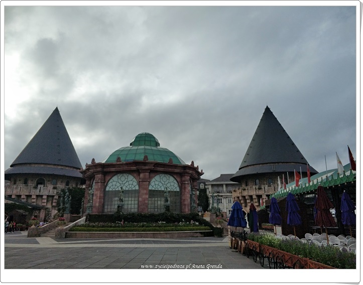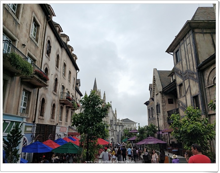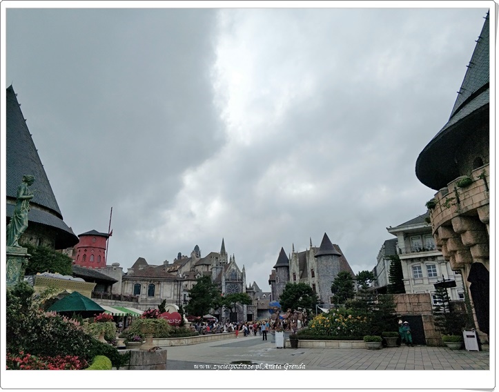 Przyznam, że Ba Na Hills zrobiło na nas wrażenie. To było niezwykłe doświadczenie. Byliśmy zachwyceni i zaskoczeni tym, że tutaj w Wietnamie mogliśmy poczuć się jak w Europie. Nawet kiedy wysłaliśmy zdjęcia naszym znajomym z Francji i zapytali oni kolegów skąd mogą pochodzić zdjęcia to odpowiadali, że z Francji. Na ogół nie lubimy zatłoczonych miejsc, a w dzień tak na Ba Na Hills jest. Dopiero po 17.00, gdy sporo ludzi zjeżdża w dół, jest cicho i spokojne, a spacer wyludnionymi uliczkami to prawdziwa przyjemność. Choć trzeba przyznać, że otulająca je mgła wywołuje różne odczucia. Jest nieco mrocznie, a przez to niezwykle klimatycznie. Bardzo się cieszymy, że postanowiliśmy tutaj zostać na noc, gdyż inaczej byśmy tego nie doświadczyli. Rano przed wjazdem pierwszych wagonów kolejki jest równie przyjemnie.