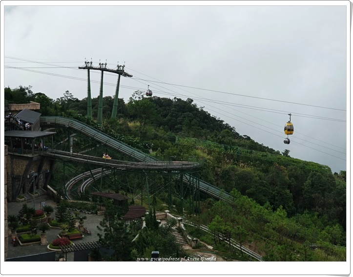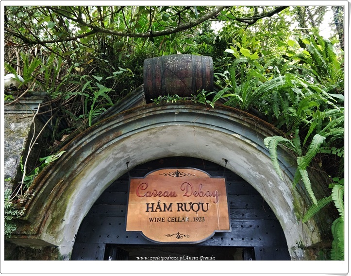 Następnie udajemy się do Wine Cellar, czyli piwniczki z winem. Otacza ją, tak jak to bywa we Francji, Ogród Winogronowy. Debay Ancient Wine Cellar to wyjątkowe miejsce, w którym francuscy architekci wykopali głęboko w Ba Na Mountain w 1923 roku starożytną piwnicę. Ma ona 100 metrów długości, a temperatura w niej jest zawsze utrzymywana na idealnym poziomie od 16 do 20°C. Spacer jej korytarzami jest niezwykłym doświadczeniem. Po wyjściu z piwnicy kosztujemy odrobinę tegoż szlachetnego trunku, bo jakżeby inaczej. Kolejką szynową przemieszczamy się ze stacji Jardin do D’Amour. Jest to wyjątkowe doświadczenie, choć już nam znane z najwyższej góry Wietnamu, jak i całych Indochin, czyli Phan Xi Pang o której pisałam w poście https://www.zycieipodroze.pl/2017/09/05/fansipan-czyli-na-dachu-wietnamu-a-nawet-calych-indochin/.