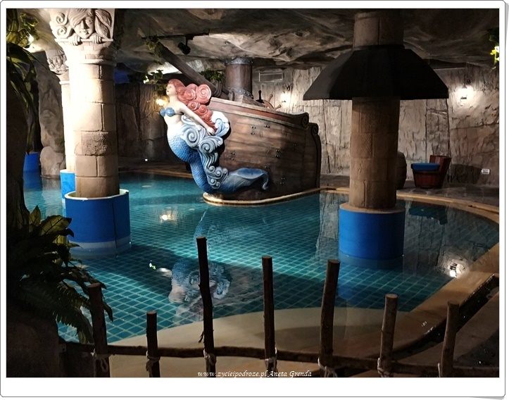 Wieczorem udaliśmy się do groty z całorocznym basenem podgrzewanym. Jest to istotne, gdyż temperatura tutaj jest znacznie niższa niż na poziomie morza, co najmniej 8°C mniej. Nocą, gdy w Da Nang jest około 30°C stopni, tutaj niekiedy zaledwie 15. Przy czym chmury, mgła wieczorna, ewentualny deszcz sprawiają, iż ma się wrażenie, że jest na prawdę chłodno. My pomimo lata panującego obecnie w Wietnamie chodziliśmy w bluzach, zwłaszcza wieczorowa porą także pamiętajcie o zabraniu dodatkowej warstwy odzienia. Kompleks basenów i jacuzzi jest bardzo klimatycznym miejscem doskonale pasującym do całości tegoż niezwykłego miejsca. Można także skorzystać ze Spa.