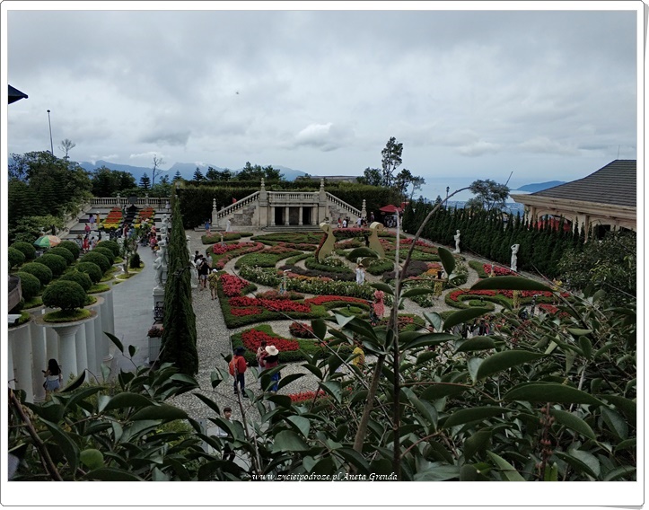 Paradise Garden i Flower Garden zachwycają. Romantyczny ogród kwiatowy Le Jardin D’Amour jest niezwykły. Tworzy go 9 ogrodów opowiadających 9 interesujących opowieści w 9 unikalnych stylach architektonicznych. Całość stanowi niezwykle barwną przestrzeń. Legend Garden do stworzenia którego zaczerpnięto inspirację z Olympia Peak nawiązując do architektury ateńskiej i egipskiej. Mo Spring Garden składający się ze stopniowanych schodów zachwyca kolorami. Ogród pamięci wraz z 4 dżinami symbolizuje 4 pory poetyckie. Kolejne są równie interesujące, a ich nazwy przemawiające do każdego. Znajduje się pośród nich Ogród Myśli, Miłości, Nieba, Święty, czy też Sekretny. Podziwiamy także 27 metrowego olbrzymiego Buddę i Linh Ung Pagodę. W czasie spaceru można odpocząć chwilkę w herbaciarni, bądź restauracji.