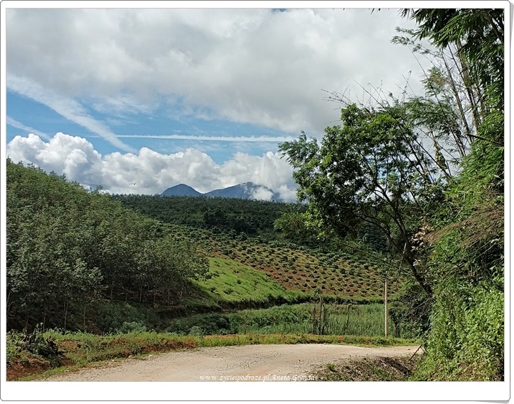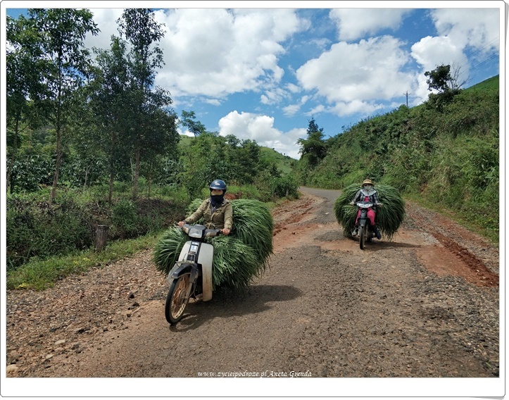 Nasza motocyklowa przejażdżka po prowincji Kon Tum była niezwykła, choć czasami dość trudna. Nie tylko ze względu na fakt toczących się tutaj krwawych bitew w czasie wojny. Raczej bardziej ze względu na jakość dróg lub ich brak. Nie rzadko zmienialiśmy plany właśnie ze względu na nie. Zwłaszcza, że odwiedziliśmy okolice Kon Tum w czasie pory deszczowej, choć w czasie naszej przygody padało rzadko. Jeden raz sięgnęliśmy po deszczówki, a nawet musieliśmy się schronić pod daszkiem u miłej pani, gdyż wraz z burzą spadło bardzo dużo deszczu. Jednakże mijane góry, plantacje, kawy, herbaty, pieprzu, ogromnych pól tapioki, manioku i kauczuku, jeziora i cudne widoki rekompensowały niezbyt dobra infrastrukturę drogową z nawiązką. Spotykani po drodze ludzie znów dowiedli, że im trudniej, im biedniej, tym bardziej serdecznie i gościnnie. Mecz obejrzany w przypadkowym domu, posiłek przygotowany specjalnie, czy chwila zainteresowania, obserwacji i uśmiechów przy najważniejszym domu we wsi, czyli Bahnar. Tak właśnie jest w zakątkach, o których niektórzy piszą, że są położone na końcu świata, a odwiedzający docierają dość rzadko.