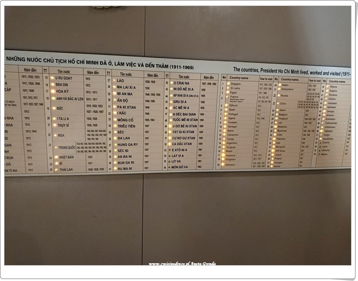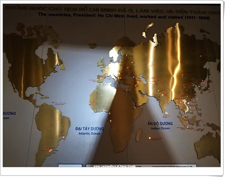 Powierzchnia Muzeum Ho Chi Minh wynosi 18 000 m², zatem jest jedną z największych w całym Wietnamie. Znajduje się w nim ponad 12 000 artefaktów, miniatur, filmów i dokumentów dotyczących życia, osobowości i rewolucyjnej kariery Ho Chi Minha. Zawierają one ponadto wielkie idee i wydarzenia z XIX i XX wieku. Ho Chi Minh był międzynarodową postacią (odwiedził mnóstwo miejsc – zaznaczone na tablicy poniżej przez podświetlenie), stąd zapewne nawiązanie do nich. Mieszkał on w Stanach Zjednoczonych, Francji, Wielkiej Brytanii, Rosji i Chinach, zanim wrócił do Wietnamu w 1941 roku. Rozpoczął wówczas kampanię niepodległościową opartą na swojej wizji. Najpierw przeciwko Japończykom i Francuzom, a następnie wspieranemu przez Stany Zjednoczone Wietnamowi Południowemu.