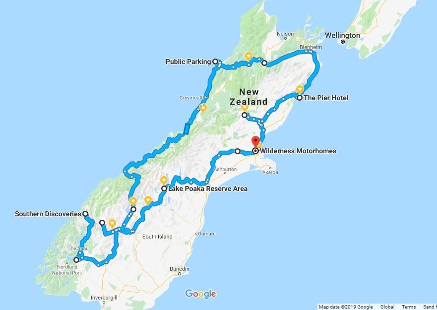 Nasza przygoda trwała zaledwie albo aż 12 dni. Przejechaliśmy 2700 kilometrów. W stosunku do tego, co przeżyliśmy i czego doświadczyliśmy, to całkiem sporo. Naszą podróż kamperem rozpoczęliśmy i zakończyliśmy w Christchurch. Poniżej nasza trasa i miejsca, w których byliśmy danego dnia. Pozwólcie jednak, że bardziej szczegółowo opiszę je w kolejnych postach. Dziś pozostawiam Was z tym słowem wstępu, naszymi ogólnymi odczuciami i przebiegiem naszej podróży po magicznej Południowej Wyspie Nowej Zelandii.