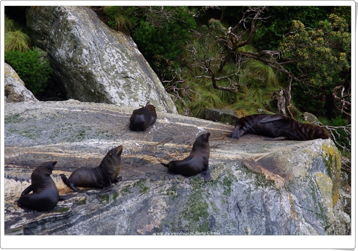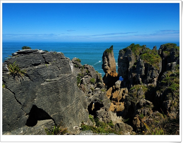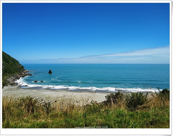 Dziś nasza podróż kamperem była także pełna niespodzianek. Wybrana przez nas trasa nadal wiodła przez zachodnie wybrzeże Południowej Wyspy Nowej Zelandii, a dokładniej wzdłuż Morza Tasmańskiego. Wybrzeże potrafi zadziwić niezwykłą linią brzegową obfitującą w różnorodne formacje skalne na przykład skały naleśnikowe – Pancake Rocks, a także plaże o wyjątkowych ciemnych piaskach. Jakże bardzo różnią się one od tych, które do tej pory poznaliśmy. Morze w tym zakątku świata mieni się zmiennymi barwami, a woda w nim jest niezwykle czysta. Tutaj mieliśmy kolejną okazje do spotkania z fokami, ale też i różnorodnymi gatunkami ptaków.