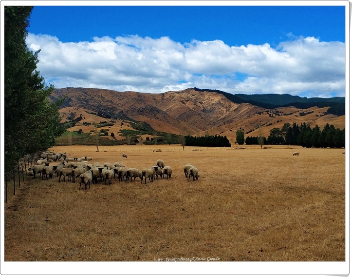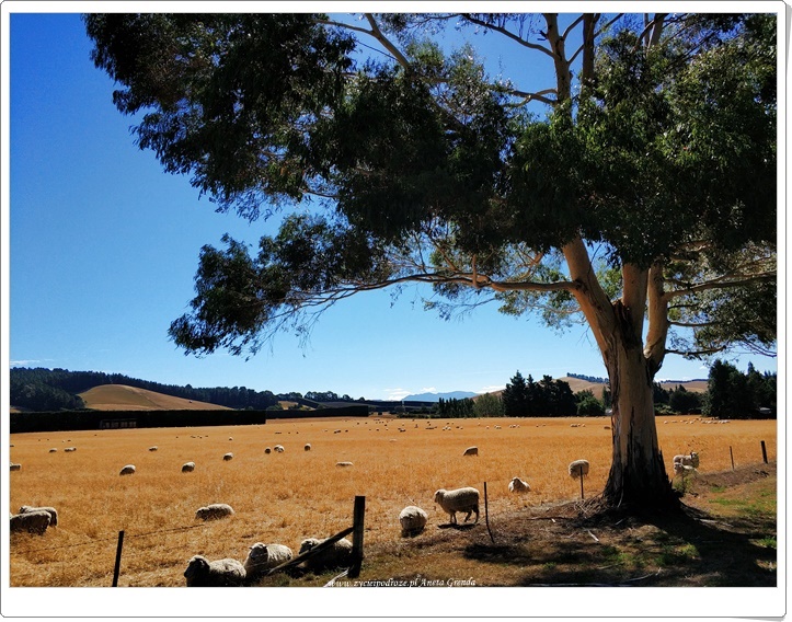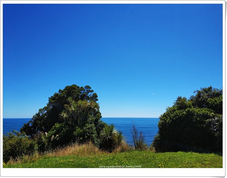 Wczoraj pożegnaliśmy się z zachodnim wybrzeżem Południowej Wyspy Nowej Zelandii. Dziś podążyliśmy pośród pięknych rzek, magicznych kolorowych gór, cudnych, zielonych winnic w kierunku wschodniego wybrzeża. Tras cudna, jak każdego dnia, choć już nieco inna. Tutaj jest równie pięknie i zachwycająco jak w minionych dniach, choć dało się odczuć większy ruch na drogach oraz spotykaliśmy więcej ludzi wokół. Po podróży pełnej pięknych krajobrazów dotarliśmy do oceanu, który mieni się różnymi kolorami. W otoczeniu gór, zieleni, traw i skałek, w głównej mierze wapiennych, prezentował się wyjątkowo. Przy oceanie widzieliśmy liczne, charakterystyczne dla tej części świata, ciemne plaże, na których można było znaleźć tylko wyrzucone korzenie, patyczki i inne elementy natury. Zero śmieci. Nie to, co w niektórych innych zakątkach naszej planety takich jak Wietnam chociażby, gdzie często chce nam się płakać na widok śmieci w ogromnych ilościach.