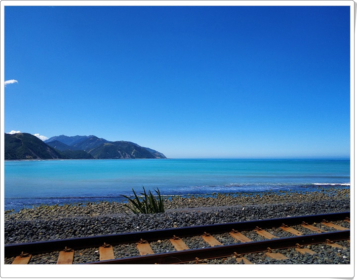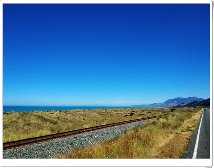 Pięknie prezentowało się torowisko położone nad samym brzegiem wody. Czyż nie cudnie byłoby tutaj podróżować także pociągiem? Myślę, że zdecydowanie tak. Już w wyobraźni miałam nas siedzących w takim pociągu i przemierzających wschodnie wybrzeże Południowej Wyspy magicznego zakątka naszej planety. Ach, czy ta Nowa Zelandia nie przestanie nas zadziwiać? W czasie tej podróży to raczej nie nastąpi. Póki co, wciąż ku naszej radości byliśmy my, kamper i Południowa Wyspa Nowej Zelandii, najpiękniejsza z wysp do tej pory przez nas odwiedzonych. Dotarliśmy do Kaikoury i zaparkowaliśmy nad samym morzem. Uwielbiamy postoje nad wodą, czy to mniejszą, jak jeziora i rzeki, czy też większą w postaci mórz i oceanów. Najlepiej w otoczeniu gór. To taki nasz mały bzik. Wieczorem mogliśmy powędkować nad brzegiem oceanu wyciągając rybki jedną za drugą. Pomyśleć tylko, że jutro czekają nas kolejne atrakcje i wyjątkowe przeżycia.
