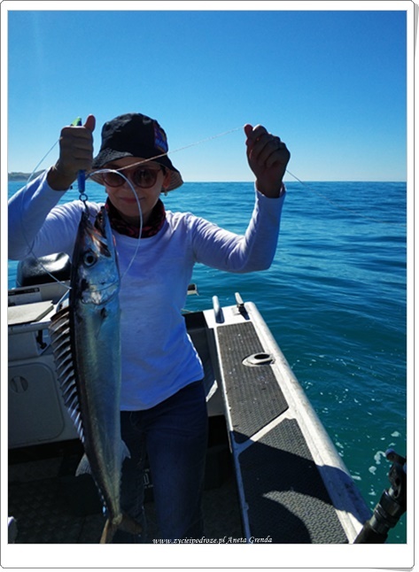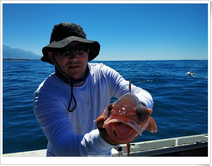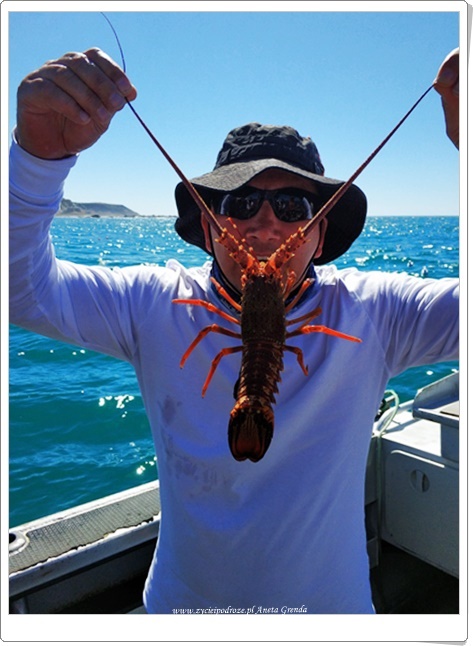 Dziś emocji i wrażeń mnóstwo. Wypłynęliśmy z Kaikoury w głąb oceanu, aby poznać tutejsze ryby morskie i nie tylko je. Wędkowanie było ogromną przyjemnością, choć im dalej od brzegu też i wyzwaniem. Trochę siły trzeba włożyć w kręcenie kołowrotkiem i wyciąganie rybek ze znacznych głębokości. Radości jednak było co nie miara. Wyciągaliśmy jeden za drugim piękne okazy, a nierzadko i dublety. Coś niesamowitego. Mogliśmy też przyjrzeć się z bliska i innym mieszkańcom oceanicznych przestworzy. Po tych niezwykłych wrażeniach zdecydowaliśmy, że na ostatni już nasz nocleg w kamperze chcemy udać się w głąb lądu i, co oczywiste dla nas, w góry. Wszak to nasza krajobrazowa miłość.