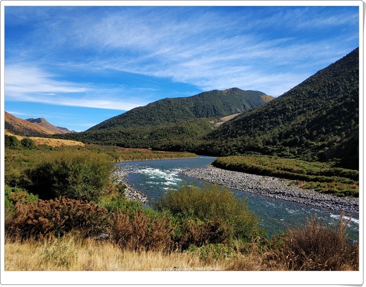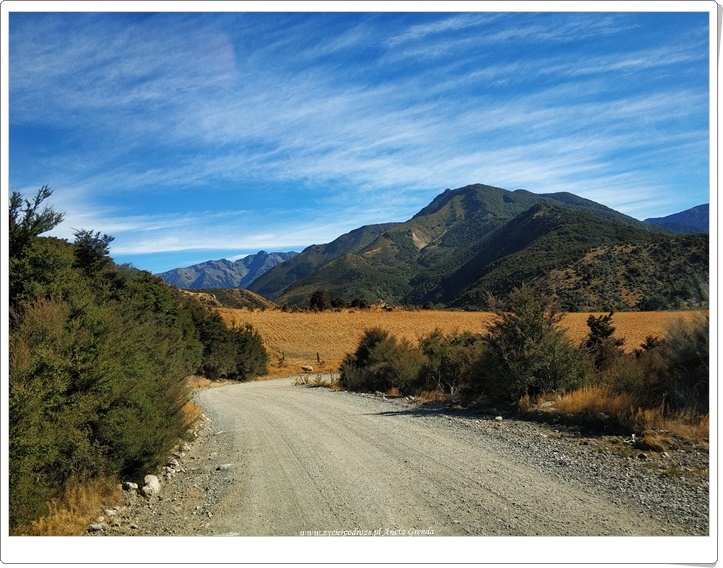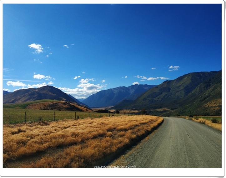 Dzisiaj kończymy naszą podróż kamperem po rajskich zakątkach Południowej Wyspy Nowej Zelandii. Pomyśleć tylko, że pokonaliśmy 2700 kilometrów w ciągu tych 12 dni podróżując różnorodnymi i niezwykłymi drogami. Nasza dzisiejsza trasa wiedzie pośród przepięknych gór, które tak uwielbiamy. Droga szutrowa, serpentyny górskie i zakręty zza których wyłania się co rusz to nowy niezwykły obraz zawsze nas ekscytują. Spektakularne widoki, cudna natura, barwne góry, przełomy górskie, zielone doliny, magiczne rzeki i jeziora wraz z ich mieszkańcami cieszą nas podczas naszej podróży każdego dnia. Taką Nową Zelandię właśnie zapamiętamy.