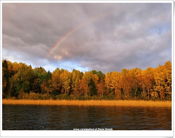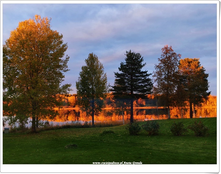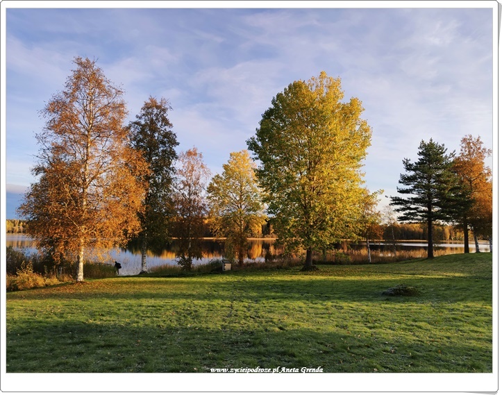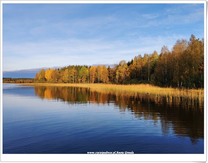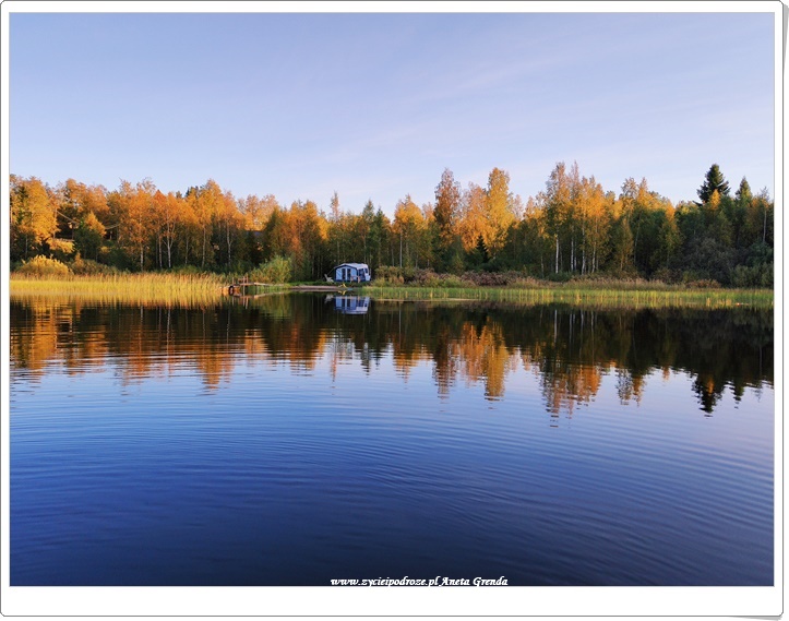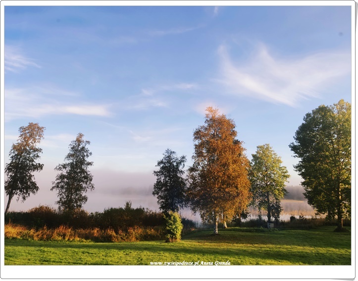 Wieczory spędzane przy kominku, a o poranku cudny widok z okna. Codziennie to samo, a nie to samo. Jezioro bowiem wraz z okalającymi je drzewami, krzewami, trzcinami codziennie się zmienia. To jesień sprawia, że intensywność przemian widoczna jest gołym okiem niemalże każdego dnia. Promienie słońca wkradające się przez okna do domu sprawiają, że jest on taki jasny. Zachęcają także, aby wyjść na zewnątrz. Kiedy słoneczko się chowa, a nawet deszczyk pada jego rolę przejmują kolorowe liście. Przyciągają jak magnes wołając i zapraszając do tego, aby podziwiać je przez krótszą, czy dłuższą chwilę.