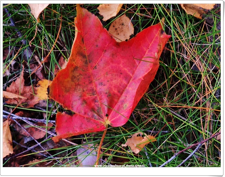 Może zabrzmi to dziwnie, że po raz pierwszy dopiero po czterdziestce dostrzegam uroki jesieni, ale tak właśnie czuję. Jedno jest pewne, iż tegoroczna jesień jest dla mnie wyjątkowa. Zapewne pozostanie na długo w mej pamięci. Jej obraz jest jak codziennie zmieniający się pejzaż. Niby ten sam, a jednak inny. Mój zachwyt nad jesienią jest wyjątkowy, co zapewne widać na moich zdjęciach, którymi się z Wami dzielę. Cóż, każdego dnia widzę, jak zmieniają się chociażby rośliny koło domu. Dopiero co je poznałam, a one z dnia na dzień wyglądają inaczej. Zielone do tej pory liście a to żółkną, a to pokrywają się rudościami, a nawet wyjątkową czerwienią. Zmieniają barwy i spadają z drzew tworząc jakże barwny dywan wokół domu, naszego jeziora, czy na ścieżkach w lesie, którymi wędrujemy.