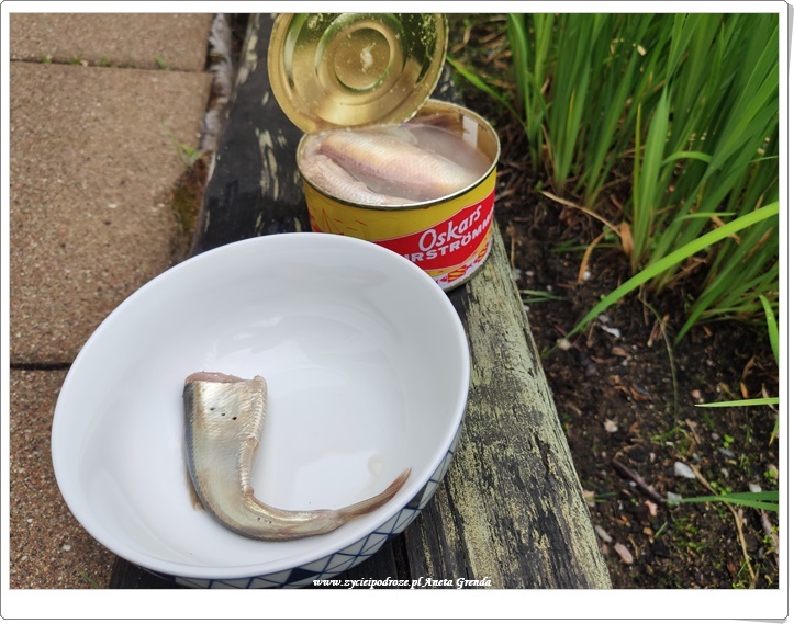 Surströmming to nie smak po który będę wracać. Może spróbuję jeszcze raz przyrządzonego przez naszych przyjaciół w najbardziej popularny sposób. W Szwecji surströmming jest często jedzony z rodzajem chleba zwanym tunnbröd. Pieczywo smarujemy, a na wierzch kładziemy posiekaną czerwoną cebulę i ugotowane ziemniaki w plastrach. Następnie rybę wyciągamy z puszki i przecinamy wzdłuż. Po usunięciu wnętrzności rybę otwieramy (rozkładamy) i zgniatamy widelcem. Układamy na kanapce. Na koniec dodajemy gęstą kwaśną śmietanę, czyli gräddfil. Nasz szwedzki przyjaciel twierdzi, że jest to doskonałe danie do kieliszka wódki. Może kiedyś nas do tego przekona. 🙂
