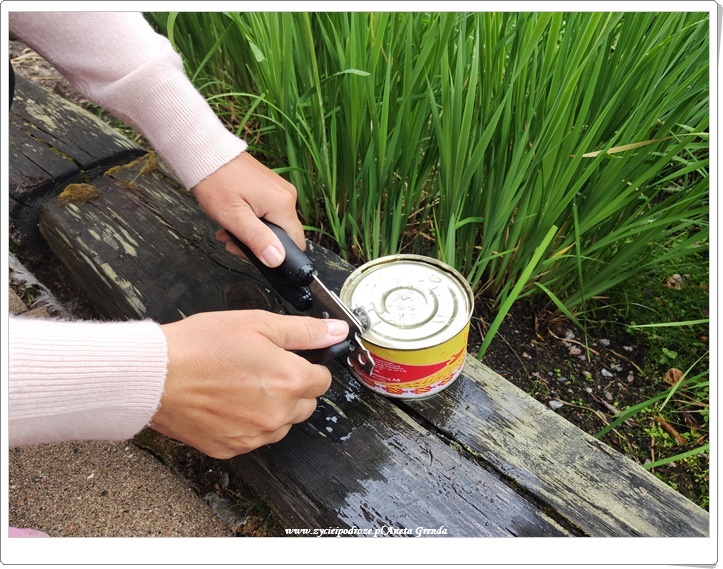 My postanowiliśmy puszkę otworzyć na świeżym powietrzu, gdyż nasłuchaliśmy sie i naczytaliśmy o jego specyficznym zapachu różnch opini. Okazało się, że była to bardzo dobra decyzja. 🙂 Mój mąż próbował puszkę otworzyć, ale szybko z tego zrezygnował. 🙂 Możecie sobie wyobrazić, cóż za zapach, a raczej odór zaczął sie wydobywać.