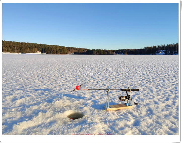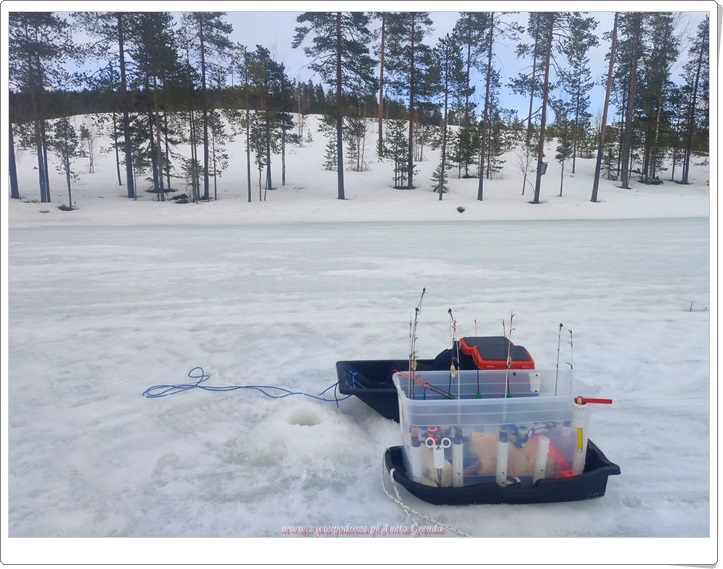 Wędkarstwo podlodowe polega na wędkowaniu na zamarzniętych wodach. Są to różne akweny. Tutaj w Szwecji zamarzają jeziora, rzeki, a nawet część Zatoki Botnickiej. Zatem możliwości wędkowania pod lodem mamy ogromne. Potrzebny jest oczywiście odpowiedni sprzęt zarówno wędkarski jak i wspomagający. Bez tego ani rusz. Poza wędkami, do których za chwile wrócę, potrzebne są wiertło, cedzak, nierzadko łopatka i odpowiednio zabezpieczone przynęty, o właściwej odzieży i środki związane z bezpieczeństwem nie zapominając. To jest minimum, gdyż my korzystamy ze znacznie większej ilości sprzętu, który mamy zapakowany na dwóch sankach, którymi przewozimy wszystko nierzadko po głębokim śniegu. Czasami bez rakiet śnieżnych się nie obyło. Jednak wybór ekwipunku to sprawa indywidualna.