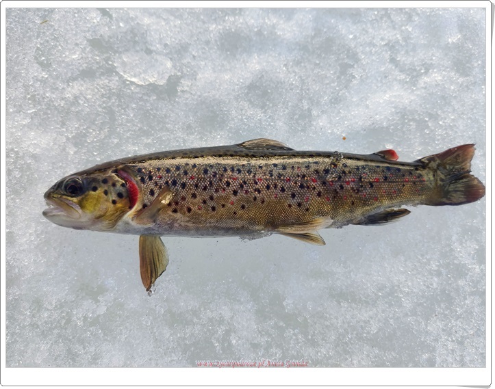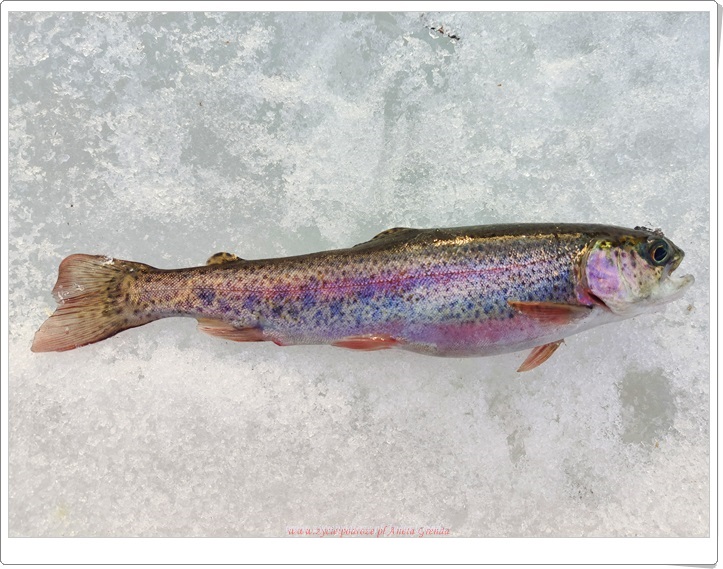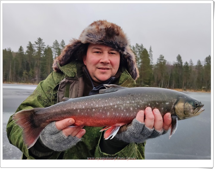 O sposobach wędkowania, a w szczególności naszym ulubionym, czyli mormyszce będę chciała napisać w kolejnym wpisie poświęconym właśnie tej metodzie. Teraz chciałabym opowiedzieć o naszych dwóch sezonach podlodowych. Tym, który obecnie kończymu i poprzednim. Dlaczego tak? Odpowiedź jest jedna. Były całkiem różne. Począwszy od wyboru jezior, gatunku łowionych ryb po dobór sprzętu i przynęt. W pierwszym sezonie dominowały okonie, szczupaki, nierzadko znacznych rozmiarów, nawet ponad 90 centymetrów długości, a także płocie. Obecnie był to sezon zdecydowanie pstrągowy. Złowiliśmy ponad 70 pstrągów, w tym pstrągi arktyczne, pstrągi potokowe i tęczowe. Jakże było to inne doświadczenie niż to ubiełoroczne. Dla przełamania kilka razy nastawiliśmy sie na leszcze, czy okonie. Zresztą też z sukcesem. Jeśli chodzi o szczupaki to po poprzednim roku, w którym złapalismy ich mnóstwo, daliśmy im teraz odpocząć zafascynowani pstrągami i łatwiejszym dostępem do nich właśnie w sezonie zimowym. To taka nasza specjalizacja w drugim sezonie podlodowym.