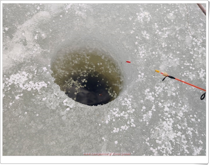 Dla przykładu podam, że my w tym roku wędkowaliśmy, poza początkiem sezonu, na lodzie o grubości 50-55 centymetrów, a nawet 65. Dla porówniania, w Polsce wchodzi sie na lód nawet tylko kilkucentymetrowy. Wynika to z tego, że sezon podlodowy jest tam krótki. My mamy ten komfort, że u nas trwa on kilka miesięcy. W poprzednim roku rozpoczęliśmy wędkowanie 15 listopada, a zakończyliśmy 12 kwietnia w Świeta w Wielkiej Nocy. Ten sezon rozpoczął się później, gdyż 1 grudnia i zakończylismy go oficjanie 11 kwietnia tuż po Wielkanocy, choć lód ma jeszcze grobość ponad 30 centymetrów, a miejscami więcej. Jednak lód lodowi nie równy. Może jednak napiszę o tym w innym wpisie, gdyż dziś ma być o wędkowaniu podlodowym i na nim się skupmy.