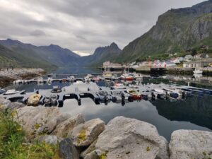 Nie mogło też zabraknąć wędkowania morskiego, zarówno na otwartym oceanie jak i pośród fjordów. Ach te ryby, mnóstwo emocji. Wiele z nich złapaliśmy po raz pierwszy…dorsze, makrele, czerniaki, molwy, brosmy, plamiaki, karmazynki i inne cuda. Im poświęcę kolejny post. Mijaliśmy również urocze wioski, miasteczka i miasta… Towarzyszył nam dobry nastrój, pyszne jedzenie samodzielnie przyrządzane na różne sposoby. Nawet zapasy na jesionno-zimowe chwile przyrządziliśmy, makrela w oleju, pomidorach, warzywach, dorsz w galarecie, czy paprykarz z dorsza. Same pyszności. Oj działo się, działo…