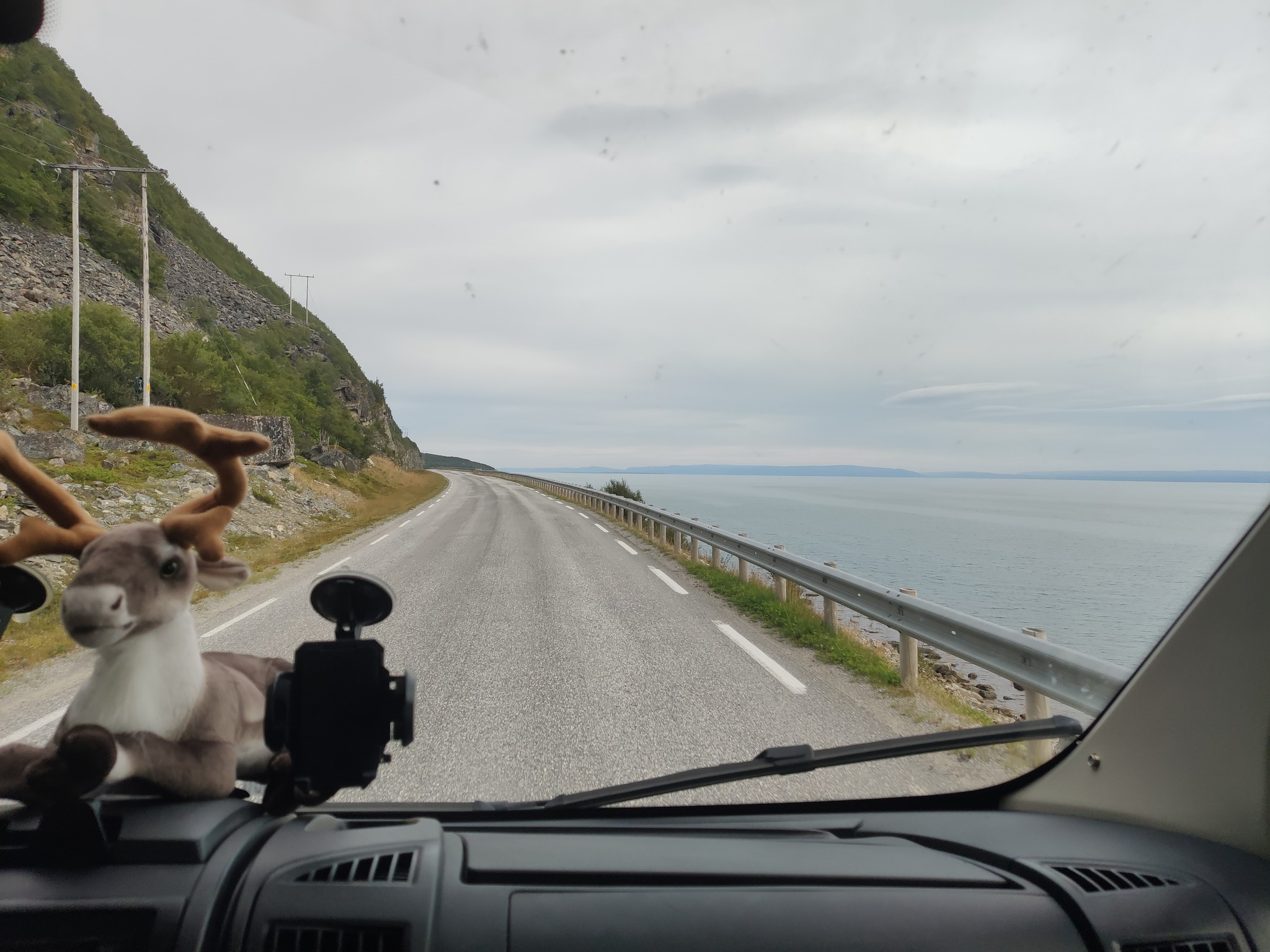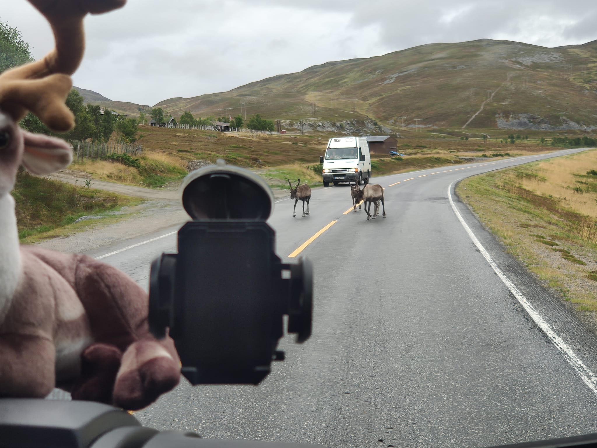 Renifery towarzyszą nam często w naszych podróżach po Skandynawii. Jednak teraz w Norwegii były niemalże wszędzie. Renifery, renifery i jeszcze raz renifery. Dopiero po opuszczeniu północnej części ustąpiły one miejsca owcom. Wszystkie one czują się bardzo swobodnie w okolicy dróg, choć niektóre przebywają za ogrodzeniami mniejszymi, czy większymi. Inne zwierzęta widzieliśmy sporadycznie podczas naszej norweskiej podróży, ale aż trzy razy widzieliśmy delfiny. Bardzo nas to zaskoczyło, ale i uradowało. Coż to za niezwykły spektakl kiedy wyskakują jeden przez drugiego z wody. Trudno je uchwycić w obiektywie, kiedy z zaskoczenia się pojawiają, ale pozostają w pamięci na długo.