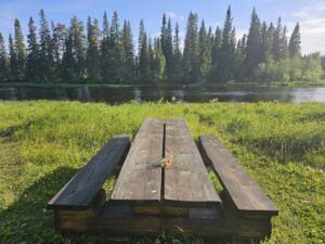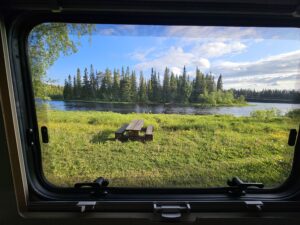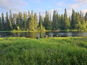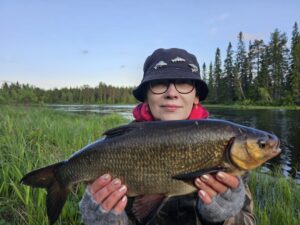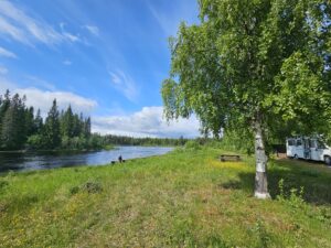 Kiedy my dotarliśmy do Togårsviken Ammeråstigen tylko dwa miejsca były zajęte, w sensie miejsca przy własnej wiacie i z własną przestrzenią grillową. 😊 Oczywiście miejsca było mnóstwo dookoła. Jednak, każdy lubi prywatność i choć odrobinę wygody. Dojechaliśmy do ostatniej takiej miejscówki i wiedzieliśmy, że to jest to. Miejsce dla nas idealne. Przy samej rzece, z wiatą i grillem. Co prawda tutaj bez toalety, ale my mamy swoją w kamperze, więc na to nie zwracamy uwagi. Zdecydowaliśmy się zaparkować naszego kampera i rozbić tutaj nasz obóz na czas Midsommar. Był to wybór doskonały, o czym mieliśmy przekonać się już wkrótce. Kamper przygotowany, stanowisko wędkarskie rozłożone, piękny wieczór i co najważniejsze rybki. Tak, tak już wówczas mieliśmy pierwsze udane wędkowania. Wyjątkowa rzeka i niesamowicie waleczne jazie, które były naszym targetem. Zaczęło się niewinnie, aby potem każdego dnia przynosić nam wędkarskie niespodzianki. To było pierwsze takie moje doświadczenie i od razu bardzo jakże fantastycznie skuteczne. Po raz pierwszy wędkowałam w ten sposób nad rzeką, w dodatku z postawionym celem, jakim były jazie.