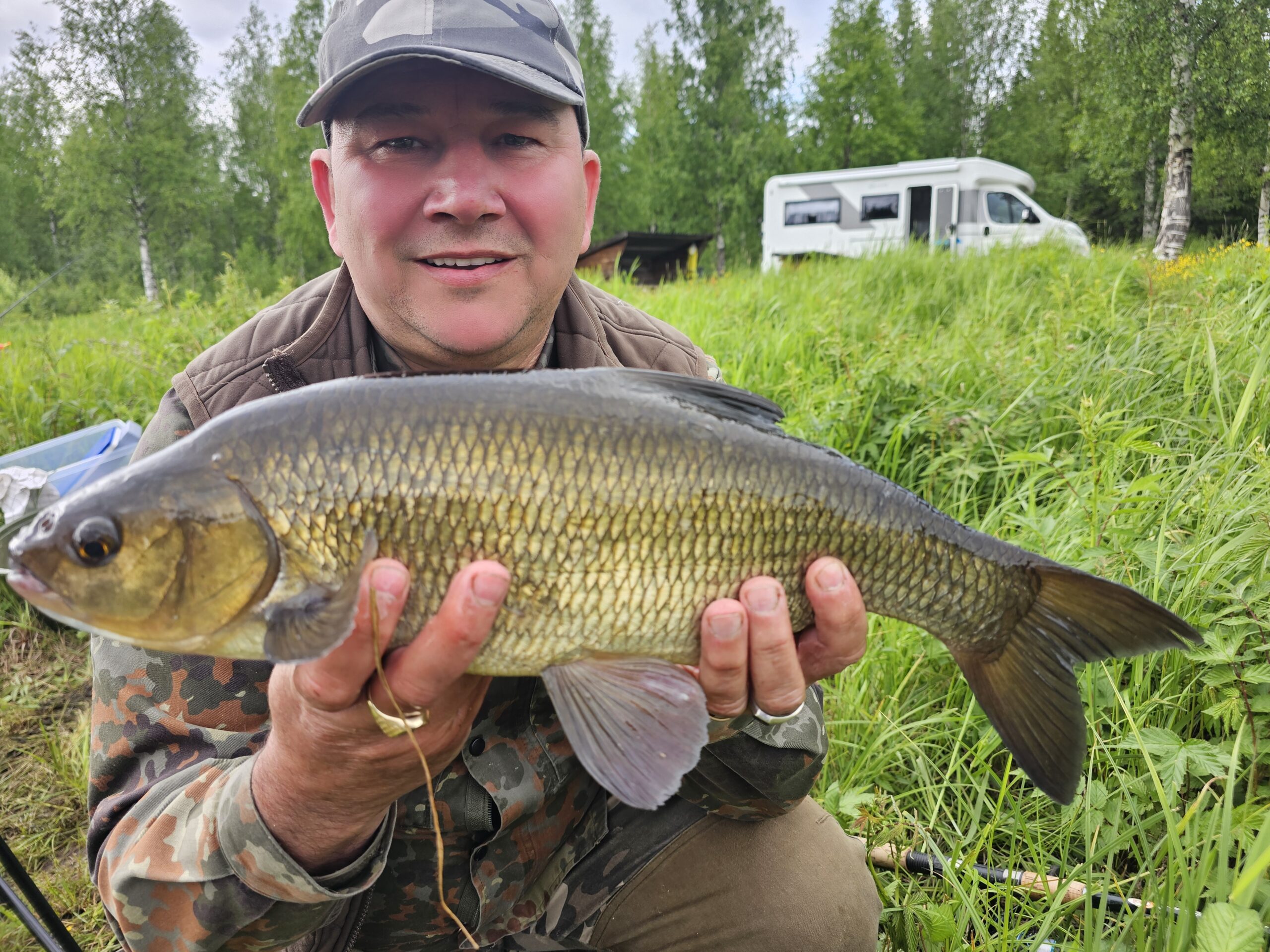 Kiedy my dotarliśmy do Togårsviken Ammeråstigen tylko dwa miejsca były zajęte, w sensie miejsca przy własnej wiacie i z własną przestrzenią grillową. 😊 Oczywiście miejsca było mnóstwo dookoła. Jednak, każdy lubi prywatność i choć odrobinę wygody. Dojechaliśmy do ostatniej takiej miejscówki i wiedzieliśmy, że to jest to. Miejsce dla nas idealne. Przy samej rzece, z wiatą i grillem. Co prawda tutaj bez toalety, ale my mamy swoją w kamperze, więc na to nie zwracamy uwagi. Zdecydowaliśmy się zaparkować naszego kampera i rozbić tutaj nasz obóz na czas Midsommar. Był to wybór doskonały, o czym mieliśmy przekonać się już wkrótce. Kamper przygotowany, stanowisko wędkarskie rozłożone, piękny wieczór i co najważniejsze rybki. Tak, tak już wówczas mieliśmy pierwsze udane wędkowania. Wyjątkowa rzeka i niesamowicie waleczne jazie, które były naszym targetem. Zaczęło się niewinnie, aby potem każdego dnia przynosić nam wędkarskie niespodzianki. To było pierwsze takie moje doświadczenie i od razu bardzo jakże fantastycznie skuteczne. Po raz pierwszy wędkowałam w ten sposób nad rzeką, w dodatku z postawionym celem, jakim były jazie.